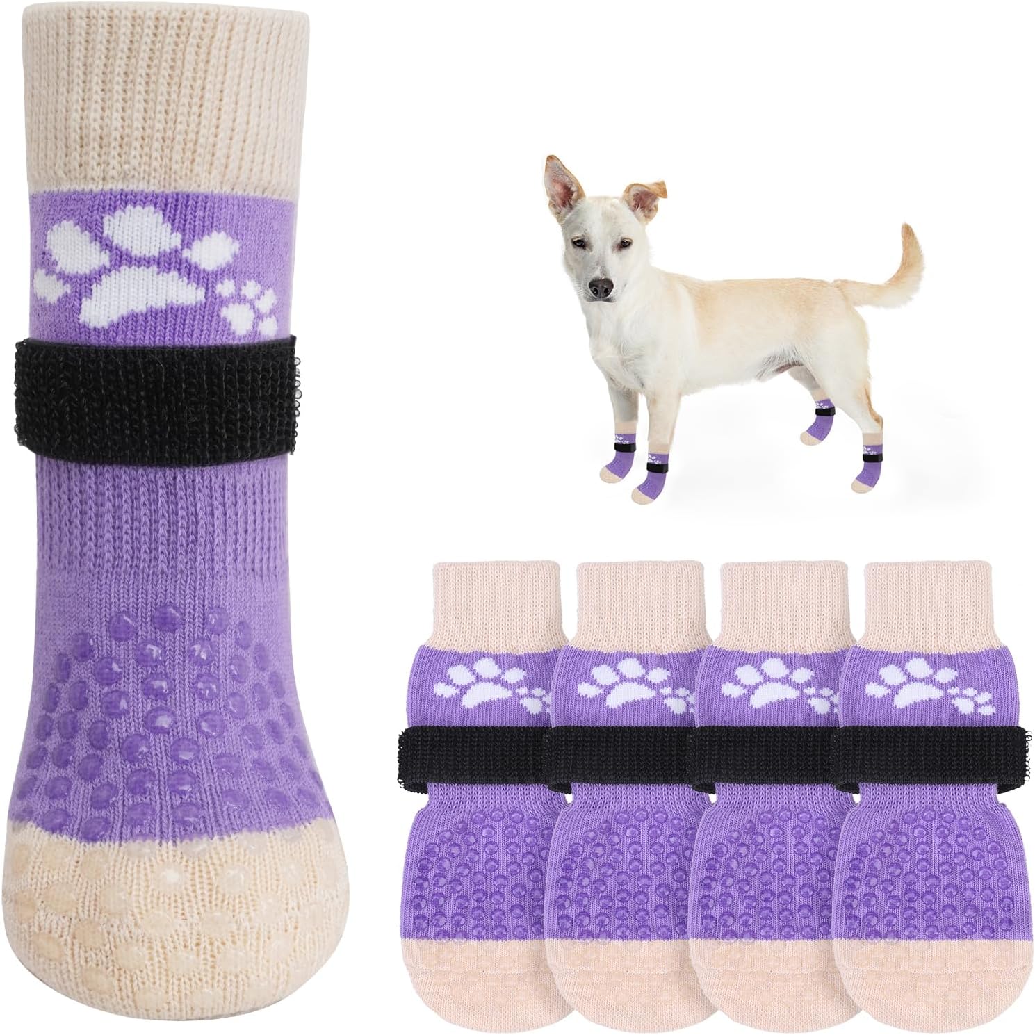 • SIZE GUIDE: XS-Paw width 1.8in, sock length 4.8in. Please be sure to measure your pet before purchasing. If the paw width is between two sizes, please choose the larger size. Includes 6 dog grip socks (two more available for replacement than other sets).