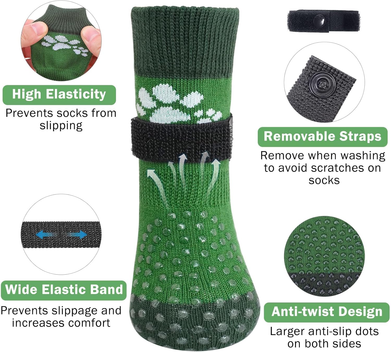 • MULTIFUNCTIONAL MULTI-SITUATION APPLICATION: This dog socks for hardwood floors can provide protection for your dog's paws from hot pavement, heat and other potential hazards in the summer. Wearing our socks also prevents dogs from licking and irritating wounds, further aiding in the healing of foot wounds.
