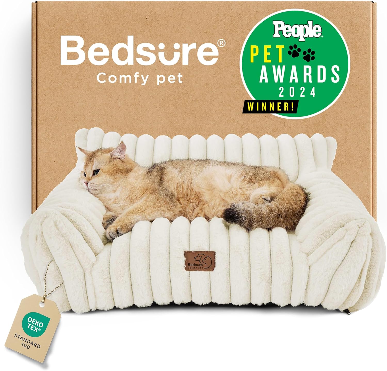 Bedsure Cute Cat Couch for Pets - Fluffy Cat beds with Premium Soft Corduroy Fleece, Fuzzy Cats beds for Indoor Cats with Removable Washable Cover, Supportive Pet Sofa, 24inch, Cream