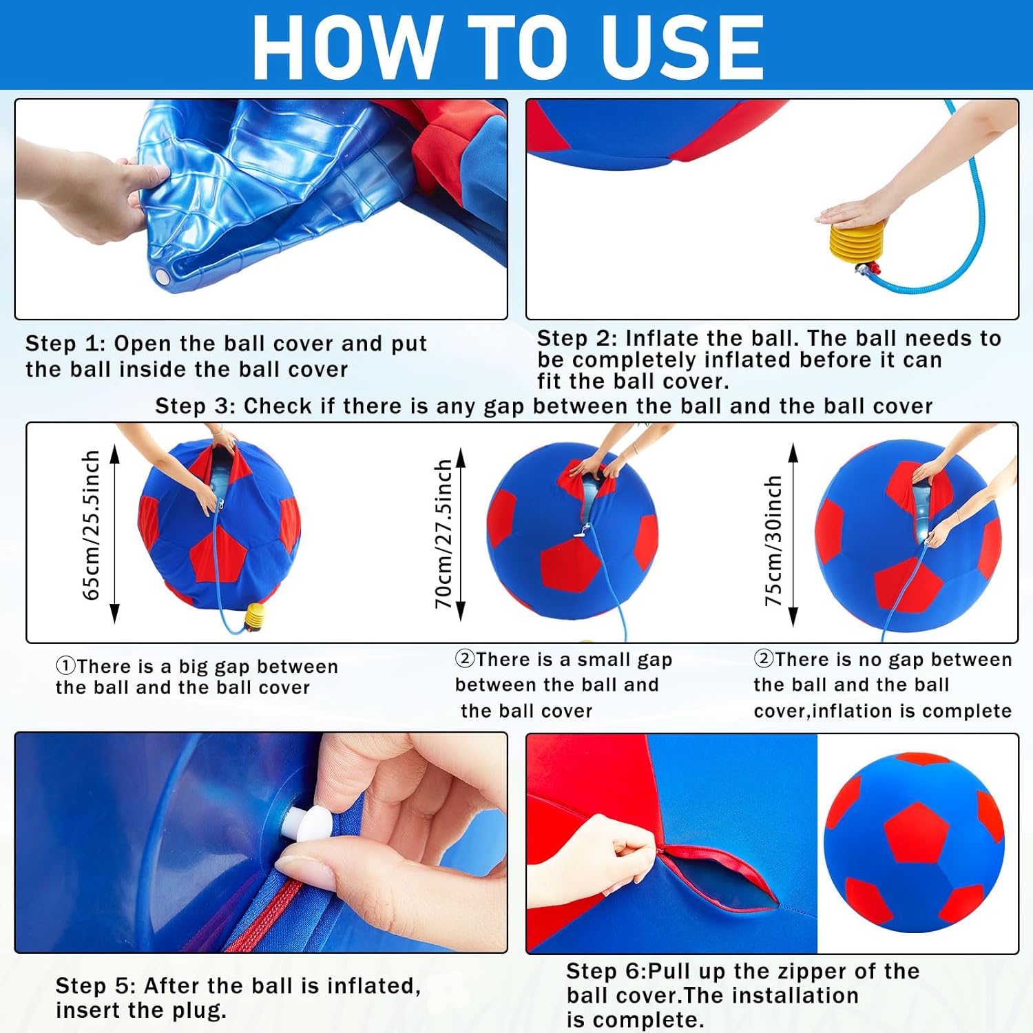 • Large Enough Size: when the horses toy is inflated to less than 30 inches, it cannot fit into the ball cover; Please continue to inflate it without worrying about the ball bursting; When it is inflated to 30 inches, it can fit into the ball cover completely without any gaps