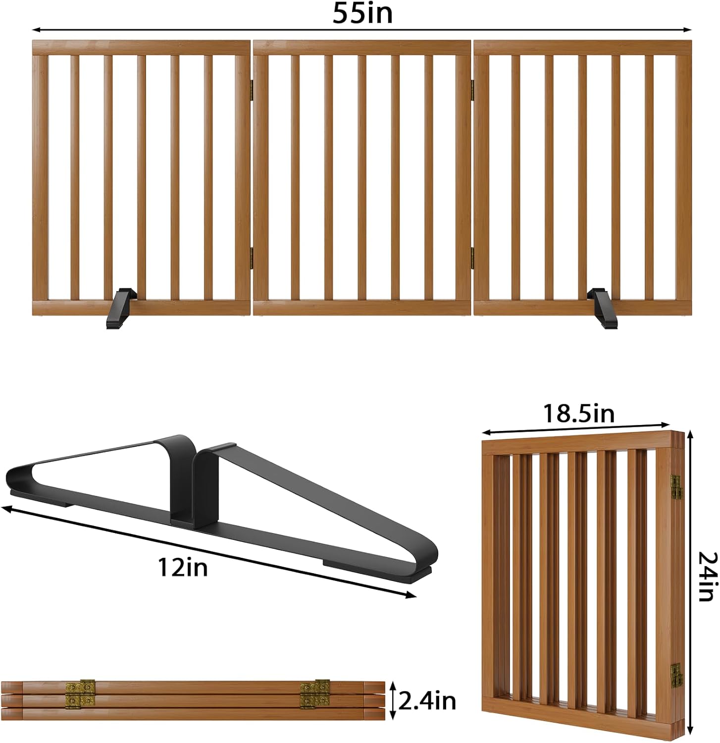 Freestanding Pet Gate Foldable Dog Gate (55 inches Wide) Walnut Bamboo Dog Gates for Stairs Doorways House (2 Support Feet Included)
