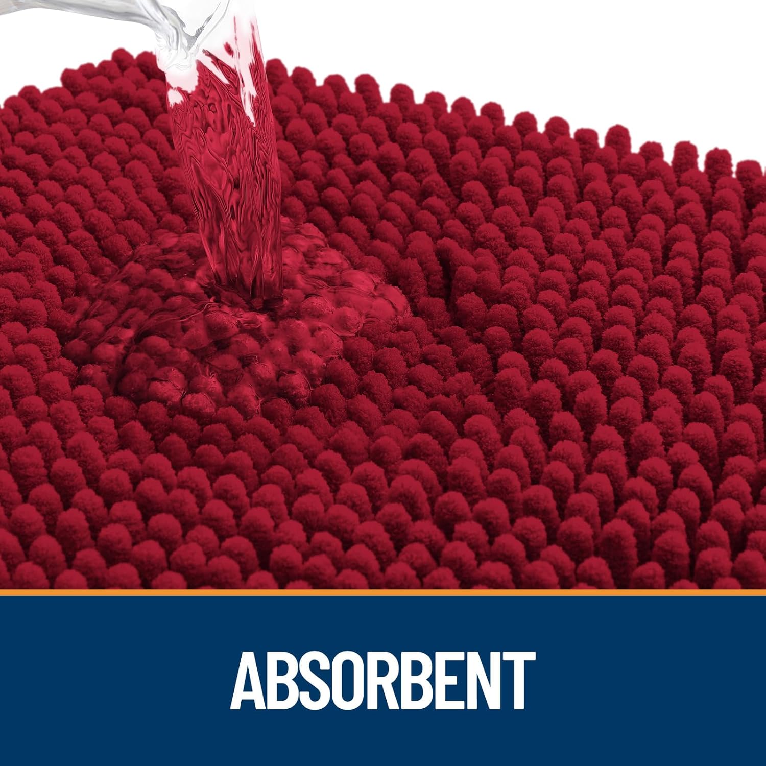 OLANLY Dog Door Mat for Muddy Paws 40x32, Absorbs Moisture and Dirt, Absorbent Non-Slip Washable Doormat, Quick Dry Chenille Mud Mat for Dogs, Entry Indoor Entryway Carpet for Inside Floor, Red