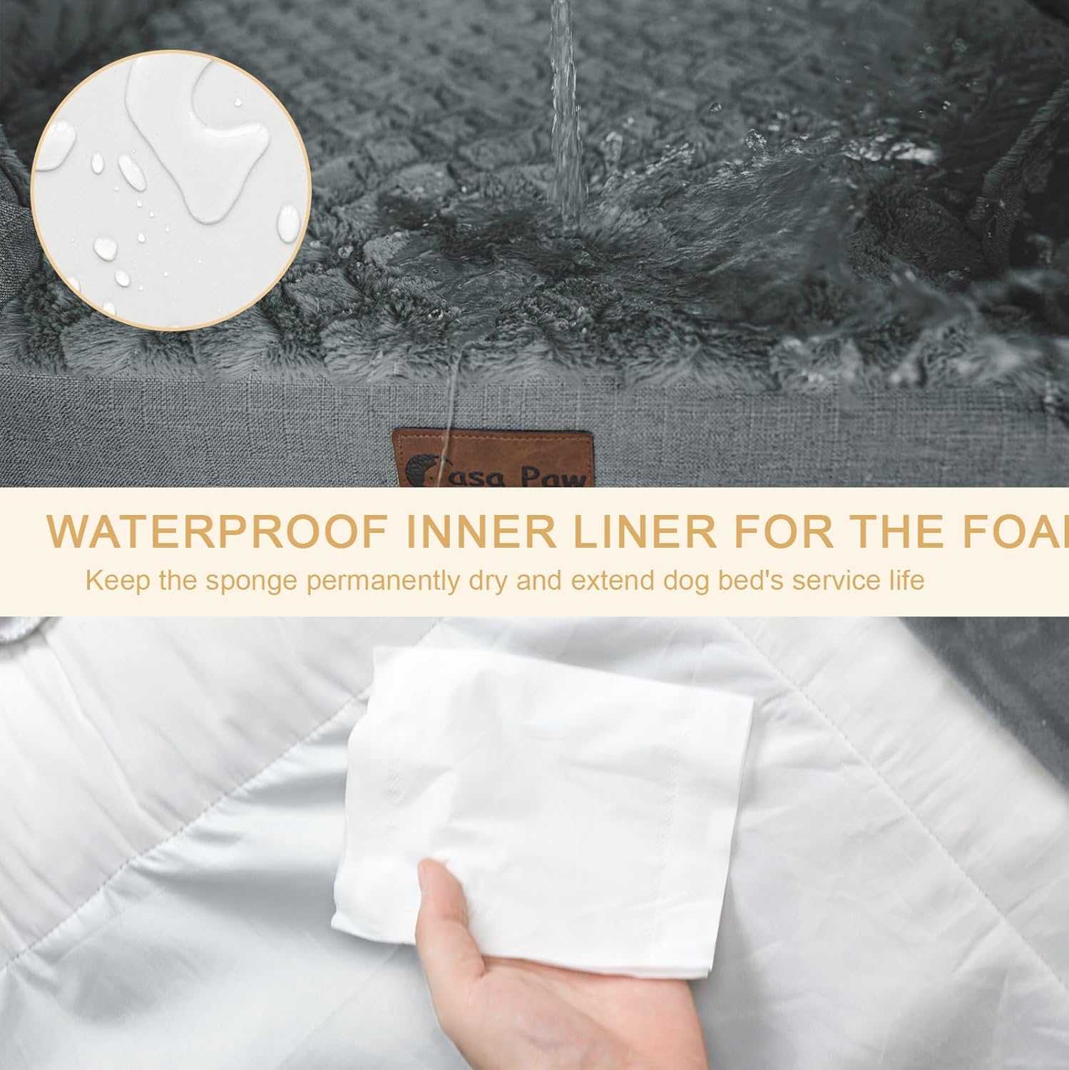 Orthopedic XL Dog Bed for Extra Large Dogs, Waterproof Memory Foam Dog Beds with Sides, Non-Slip Bottom and Egg-Crate Foam Big Dogs Couch Beds with Removable Washable Cover(X-Large,Grey)