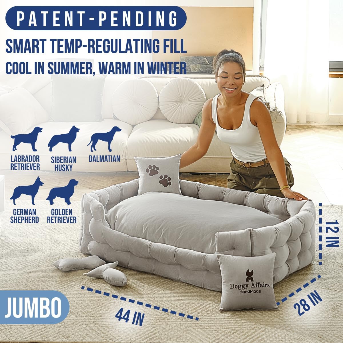 • ECO-FRIENDLY LUXURY LOVED BY 3,000+ DOG PARENTS: Filled with temp-smart fibers made from 5M+ recycled bottles. Tested by 500+ rescue dogs for durability, comfort, and anxiety relief — proven zero-flattening support.