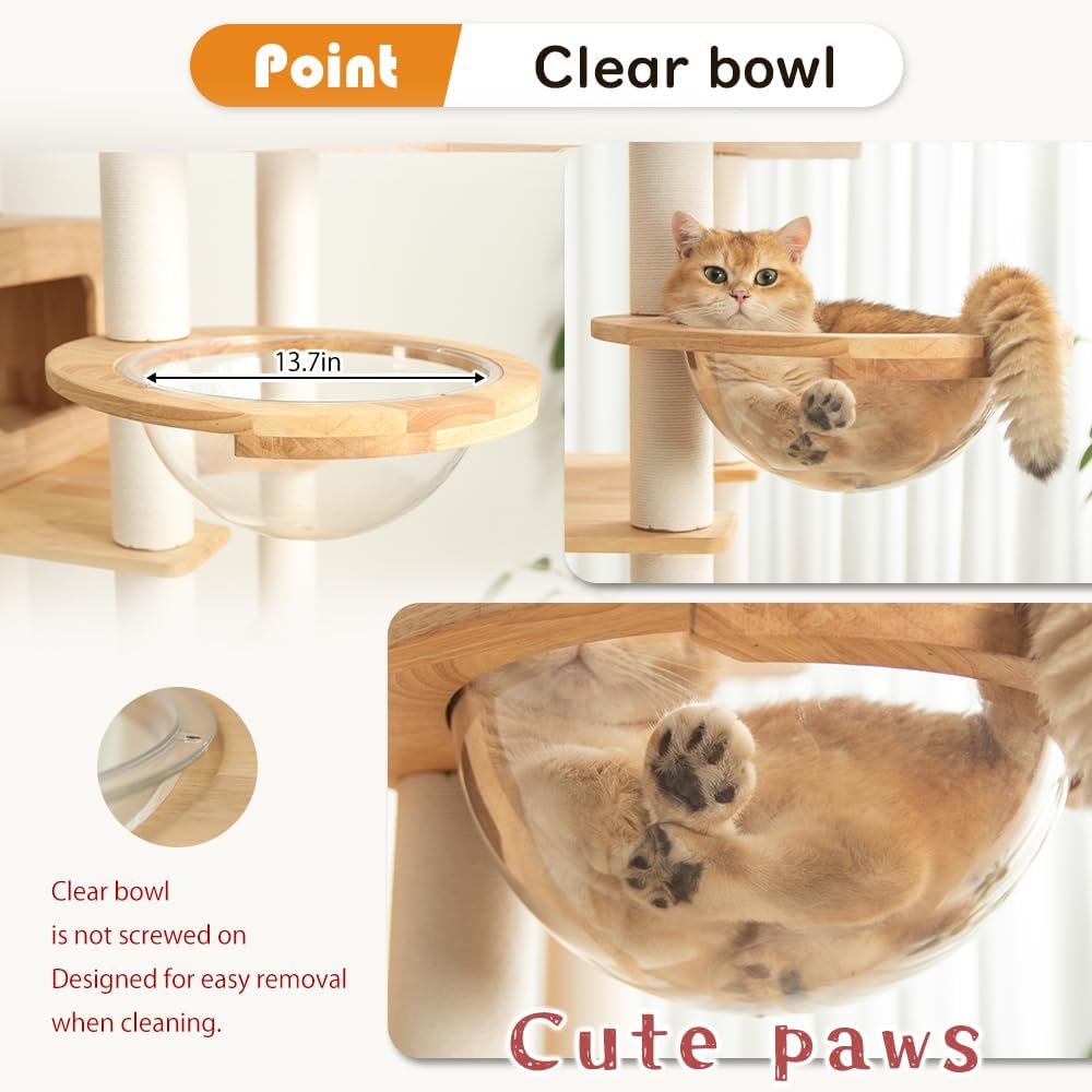 • Private Cat House & Acrylic Bubble Lounge-Includes a cozy wooden cubby with a cute cat-head opening for privacy and an acrylic bubble perch to satisfy your cat’s curiosity and love for elevated views.
