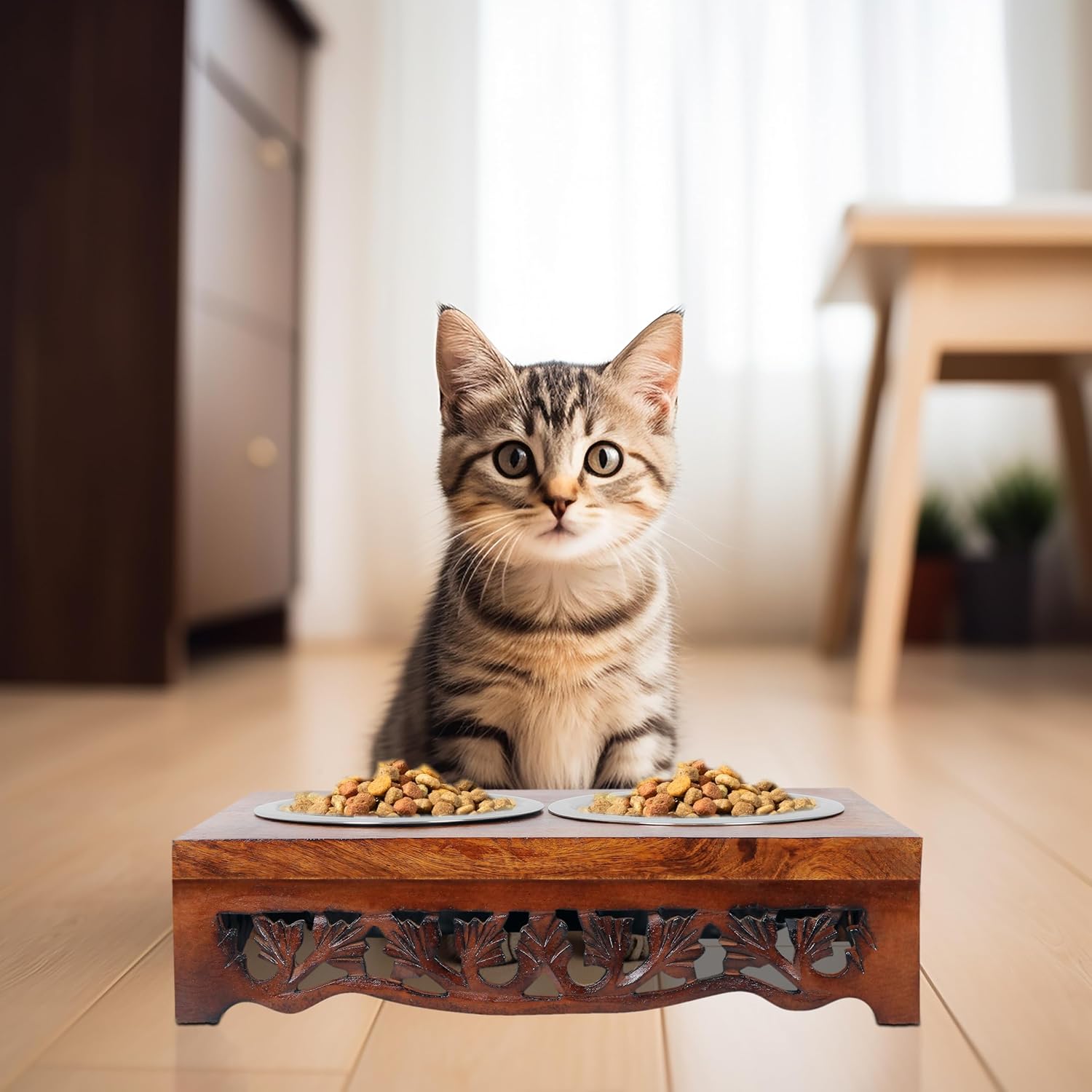 • ๐Ÿ• Perfect for Small and Medium-sized Pets: Upgrade your pet's feeding experience with the Scroll Handcarved Pet Feeding Station by IRONGATE - Sleek, Eclectic, adventurous, and ready for food. This dog food stand allows your pet to eat in a healthy position to reduce stress on the neck and spine. This promotes better digestion and thus better health. Keeps your pet happy and comfortable.