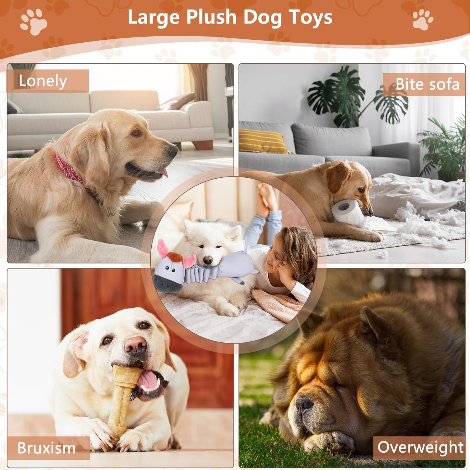 Squeaky Plush Dog Toys for Puppy Toys, Interactive Tug of War Dog Pull Toys, Stuffed Dog Pet Toys for Teething Puppy, Indoor and Outdoor Play for Small Medium Dogs and Large Dogs