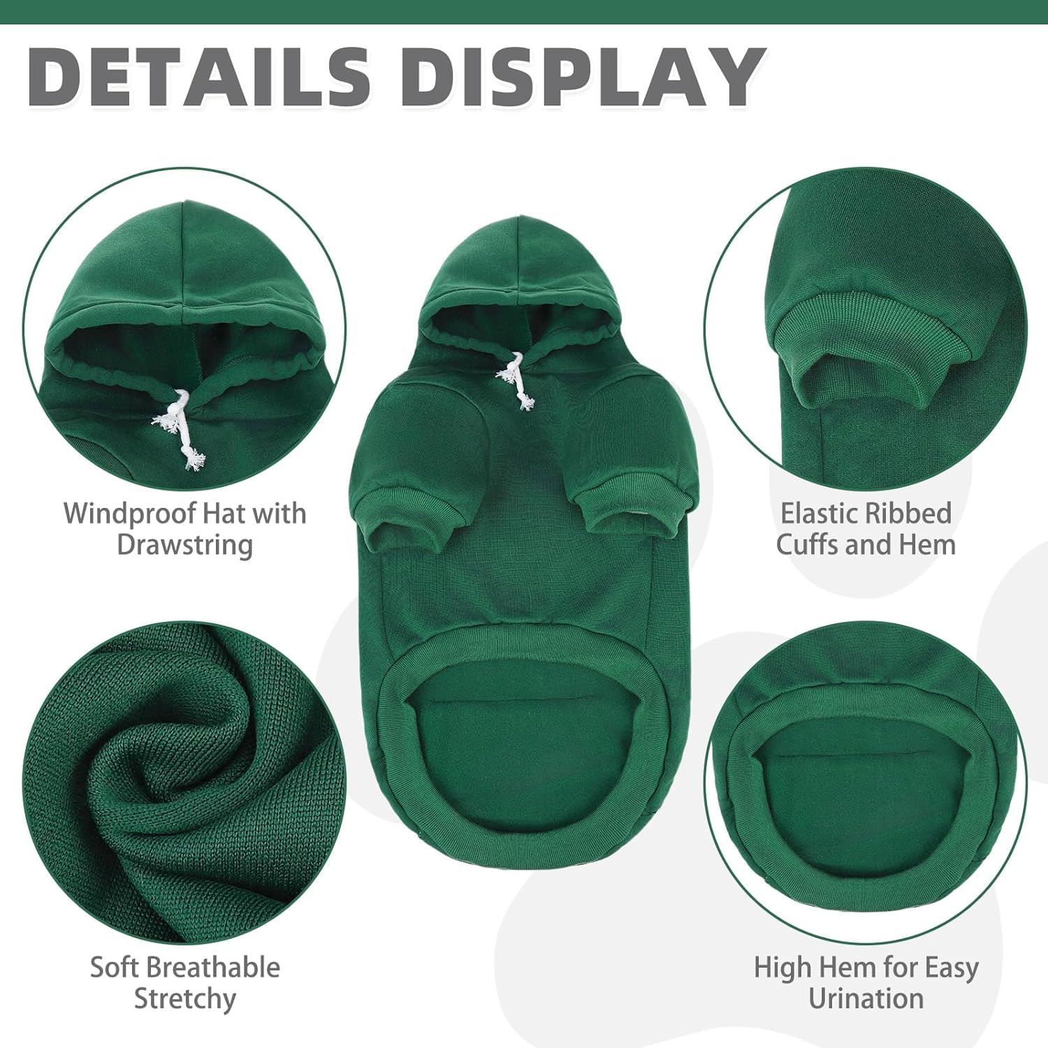 KOOLTAIL Basic Dog Hoodie - Soft & Warm Dog Hoodie Sweater with Leash Hole and Pocket, Dog Winter Coat, Cold Weather Clothes Sweatshirt for Small Medium Large Dogs Puppy Cat Boys Girls Deep Green M