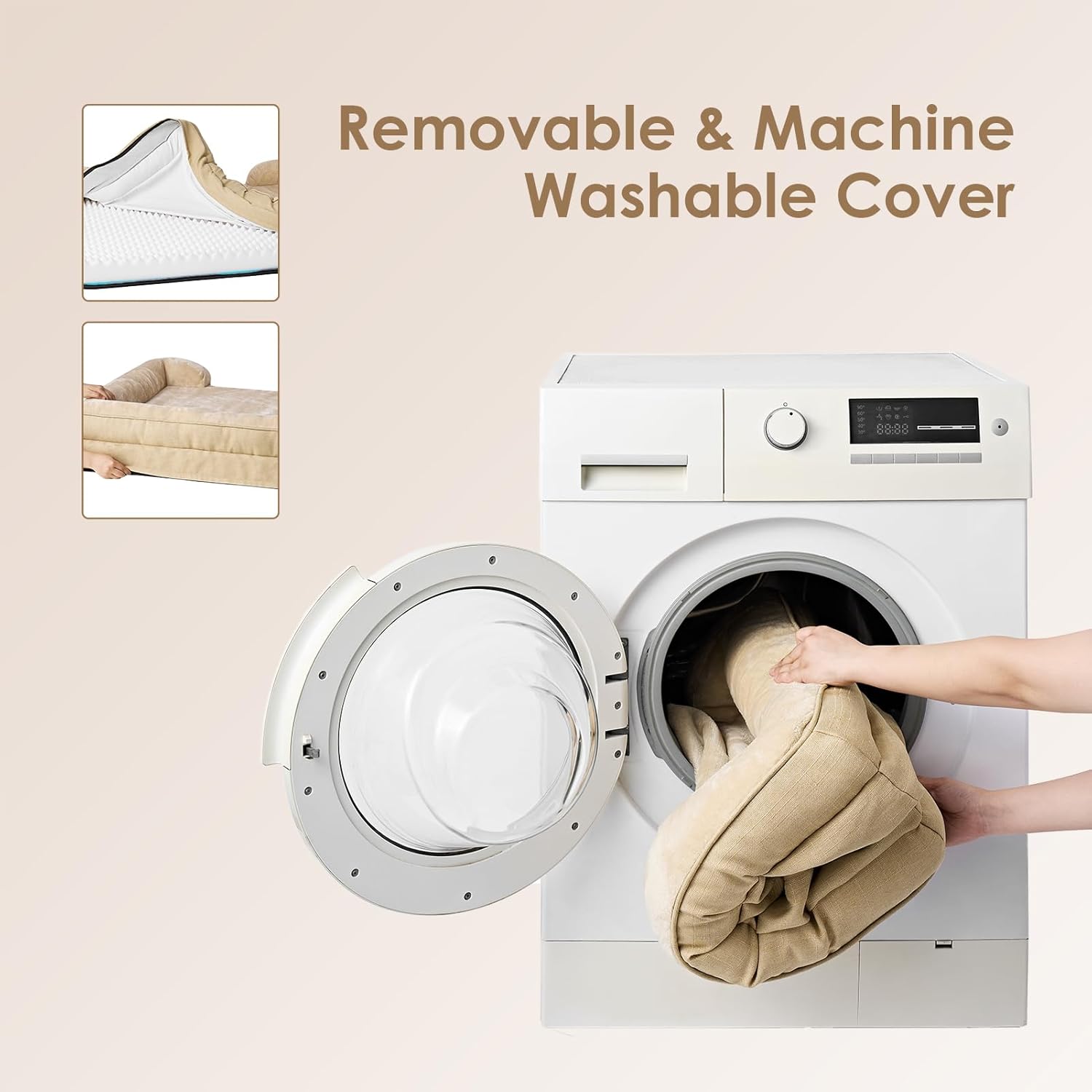 • CARE INSTRUCTIONS: Our dog bed features a removable and washable cover with a zipper closure, making it easy to clean. Remove the foam insert, and the cover can be washed in a machine. Please note that the foam insert is not washable. Allow the bed to expand for 24-48 hours after unpacking.