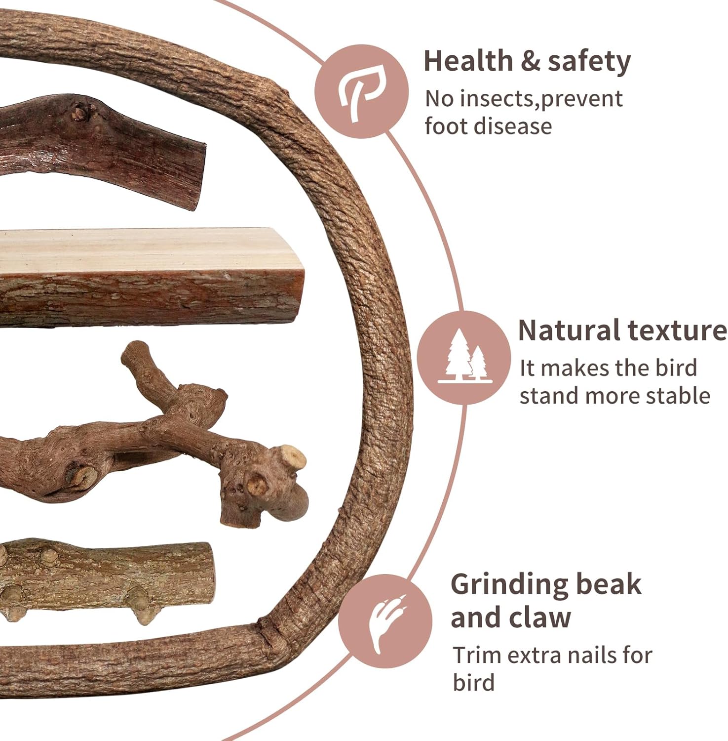 • 【High Quality Wood】Made of 100% Natural Wood, after sterilization and deworming,Our Bird Perches Are Environmentally Friendly, Nontoxic,Durable and Free of Harsh Chemical Odors, Safe for Your Small Pets and in Line with the Requirements of a Bird's Natural Habitat. There May Be Some Wood Chips in the Package, Which Are Dropped by the Tree Skin During Transportation, They Are Not Garbage, Please Understand.