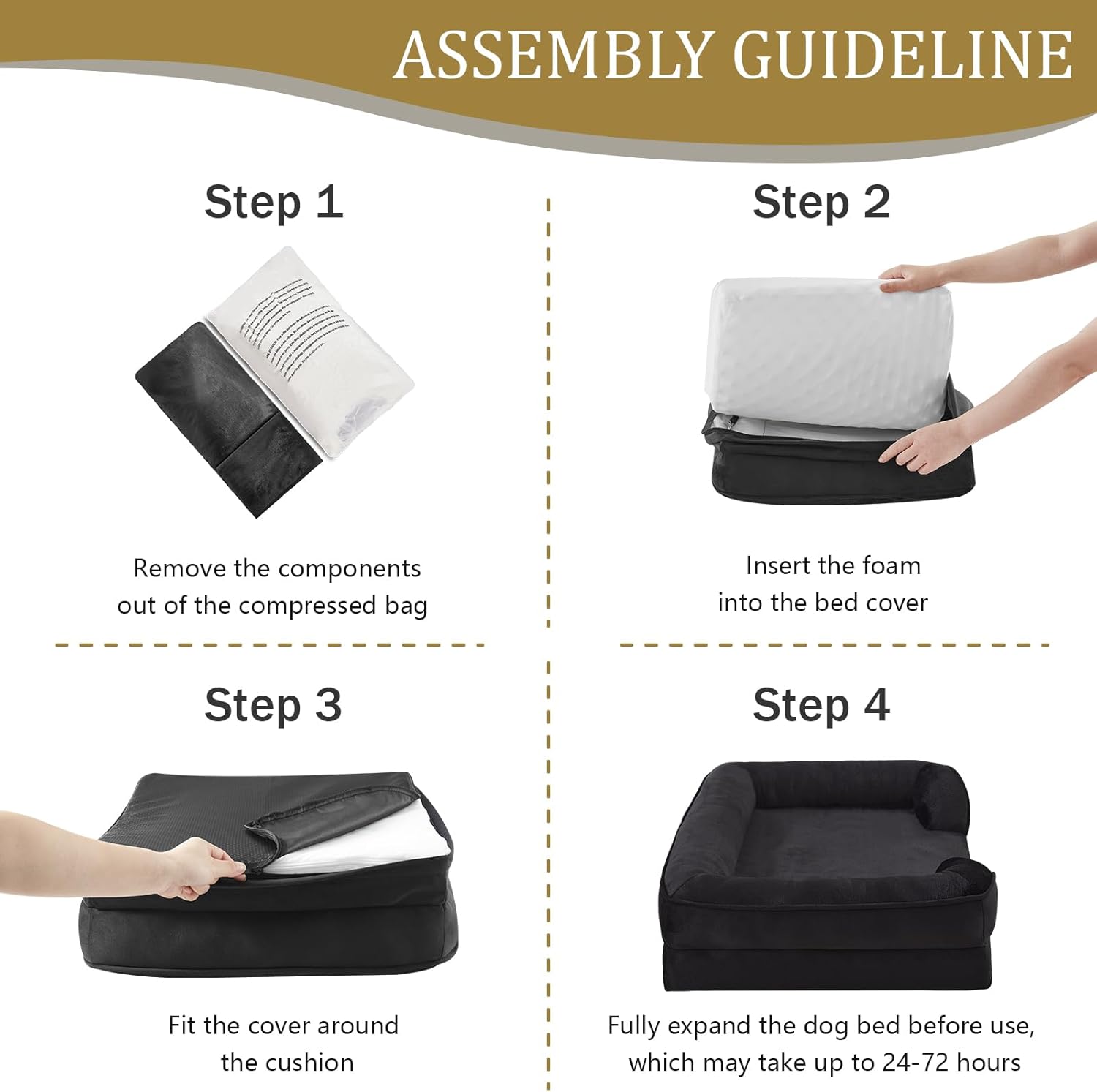 • Easy Care: Upgrade to our advanced waterproof dog bed. With full-coverage water-resistant fabric, even the bolster is protected from leaks. No noise, just pure comfort for your furry friend. The removable cover makes cleaning a breeze, simply unzip and toss it in the washing machine for a fresh and clean bed.