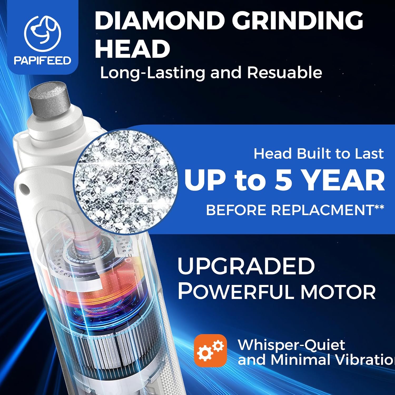PAPIFEED High Torque Dog Nail Grinder Quiet - 6-Speed Adjustable Dog Nail Trimmers with 2 LED Lights & Dust-Proof Cover, Powerful Motor for Large/Medium/Small Dogs & Cats, Rechargeable - White
