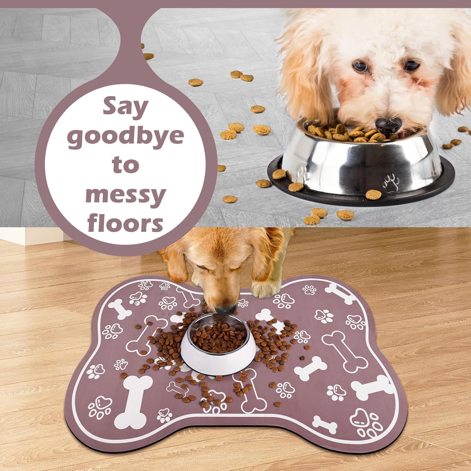 Dog Cat Mat for Food and Water,Rapid Absorbent Pet Feeding Mat, Bone Shaped Dog Placemat Bowl Mat with Rubber Backing,No Stains Pet Food Mats Indoor, Pet Accessories Supplies,Brown 12"×18"