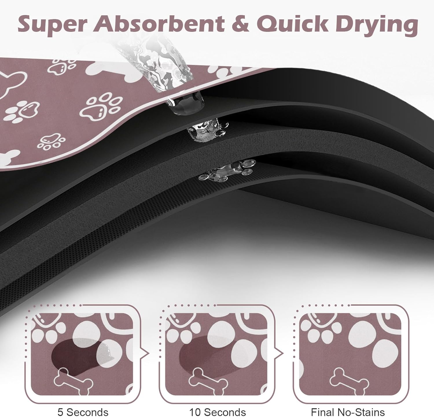 • Super Absorbent & No Stains: This pet feeding mat is extremely absorbent and dries quickly, absorbing any spilled water and milk,protecting your floors from stains and damage. Say goodbye to messy feeding areas and hello to a tidy, organized space that both you and your pets will appreciate.
