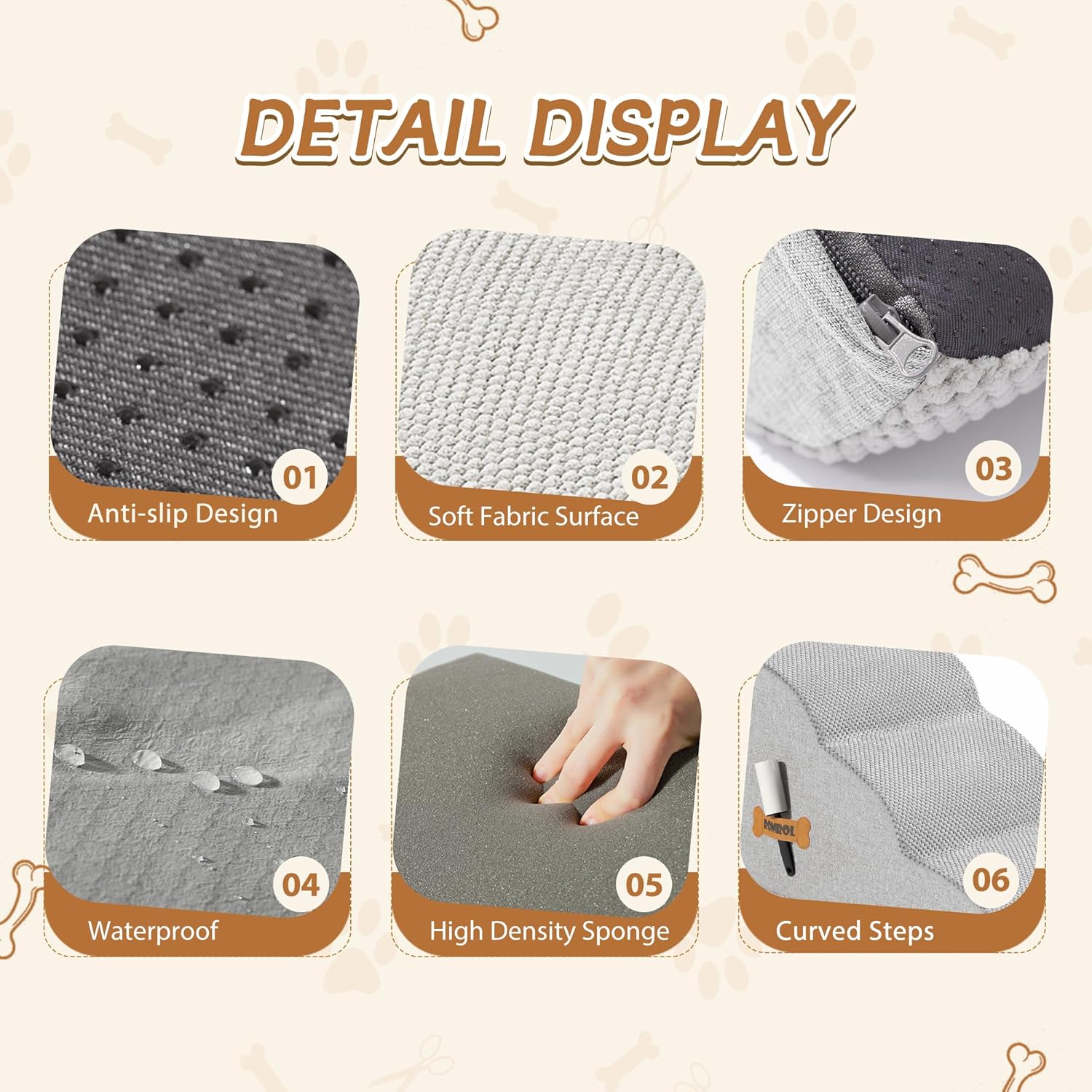 • 33D REBOUND HIGH-DENSITY FOAM: Our 33D foam delivers 63% faster rebound vs standard foam with enhanced weight capacity. Perfect for puppies, senior dogs, and pets recovering from surgery to access beds/couches safely. Dual-purpose as cat stairs for multi-pet households