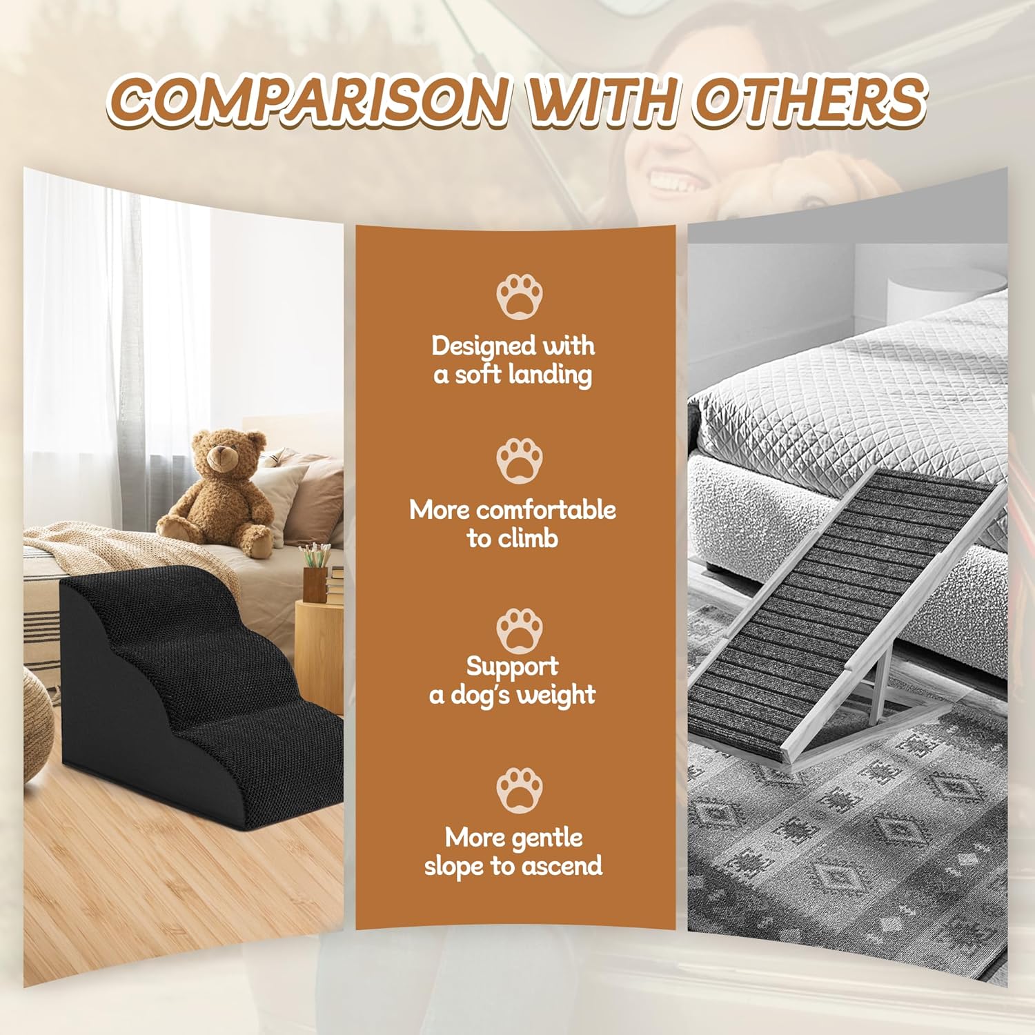 • 33D REBOUND HIGH-DENSITY FOAM: Our 33D foam delivers 63% faster rebound vs standard foam with enhanced weight capacity. Perfect for puppies, senior dogs, and pets recovering from surgery to access beds/couches safely. Dual-purpose as cat stairs for multi-pet households