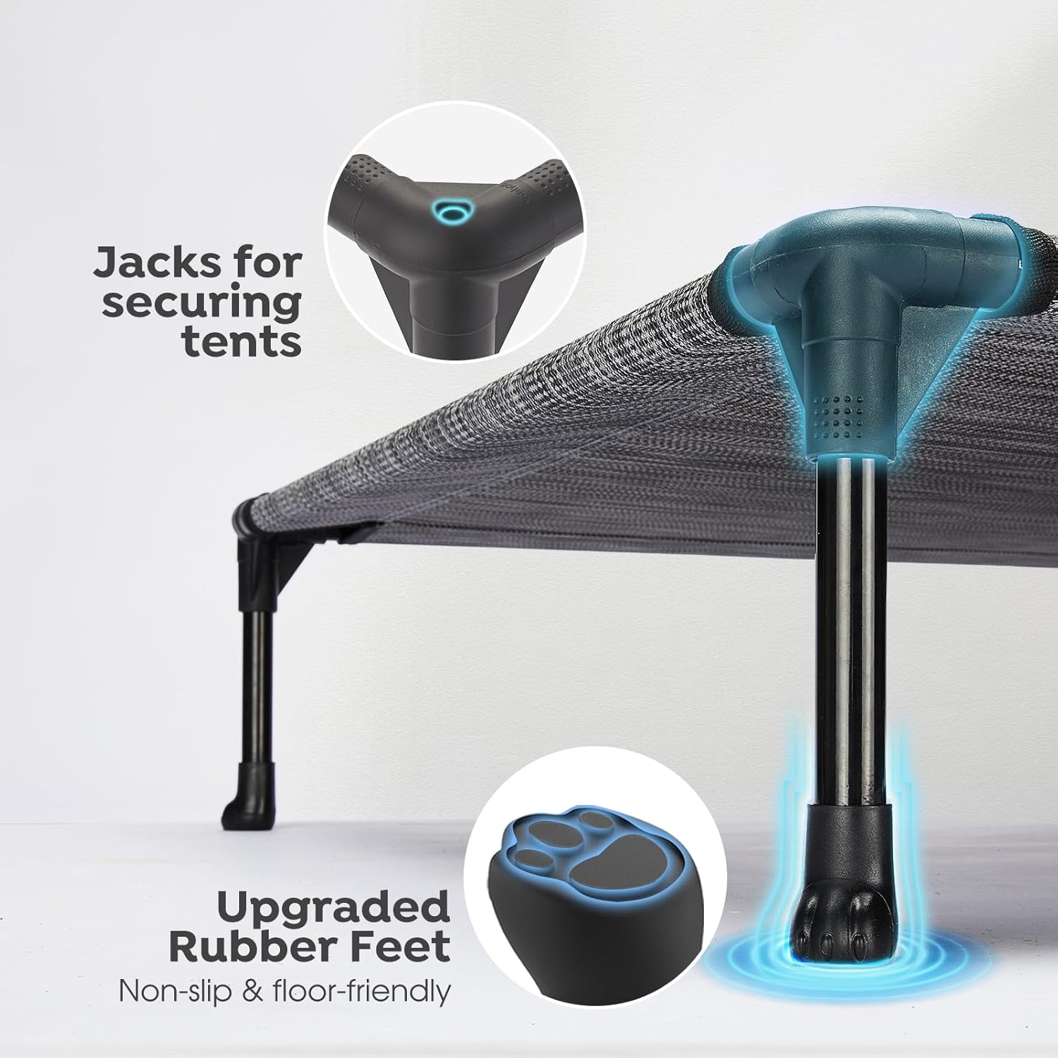• Say Goodbye to Anxiety! Our dog cot is composed of powder-coated steel tube, durable textilene fabric, and non-skid rubber feet. Strong stability and high load-bearing capacity means saying goodbye to the fear of a sudden bed collapse.