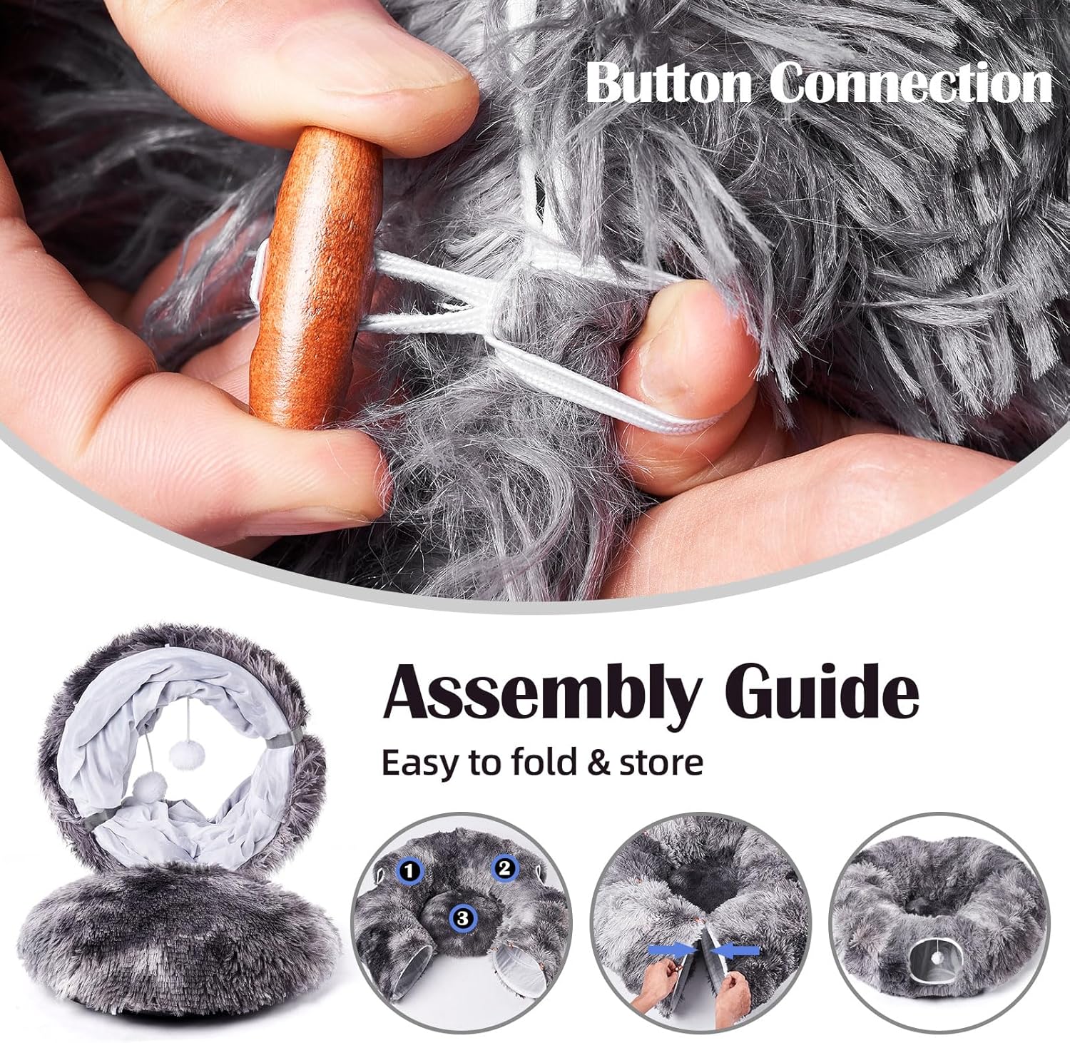 • 【Assembled into Different Shapes】Odoland cat donut tunnel is made with high-quality soft plush material. You can shape the tunnel in a straight, S-shaped or even circular form. The fur cat soft sofa can be placed inside the cat tunnel or used separately.