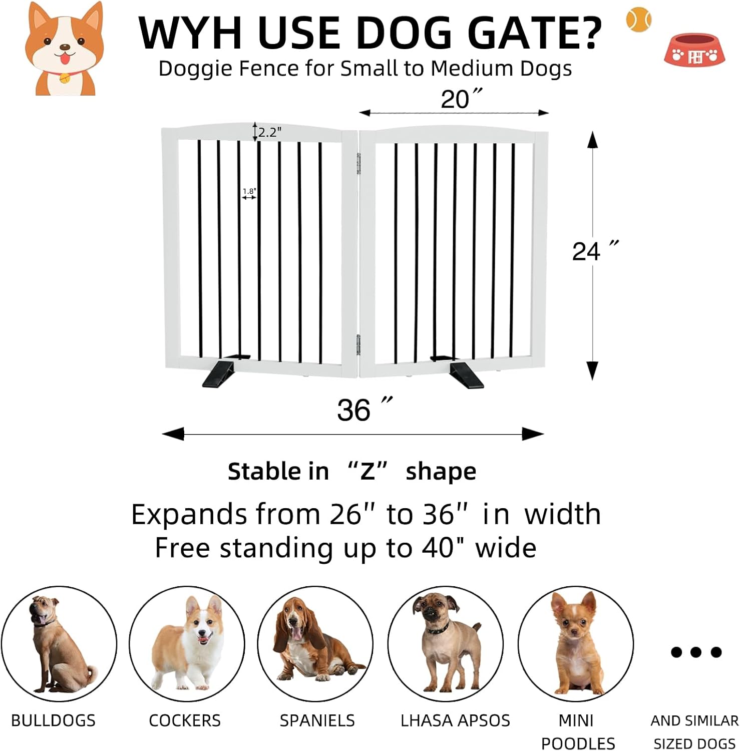 ZJSF Freestanding Foldable Indoor Dog Fence for Stairs Wood White Long Pet Gates for Dogs, Dog Gates for Hallways,Puppy Gates for House Support Feet Included 24 "Height-2 Panels
