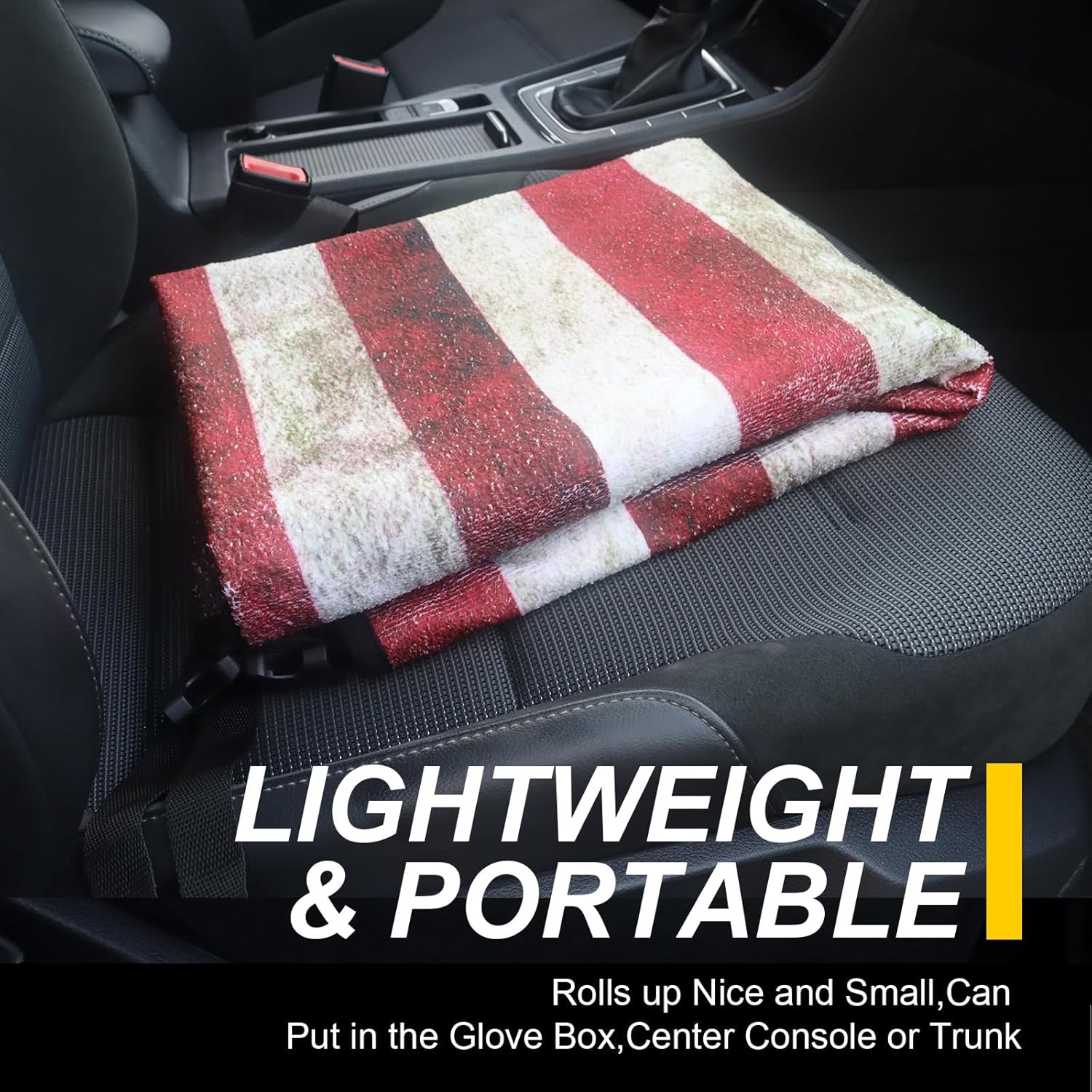 • Made From 3 Layer Material: (Front) American flag pattern printed on towel cloth, which gives the rear seat cover a good look and a super long life. It is perfect for leather or upholstery back seats. (Middle) Waterproof fabric that is designed to guard your backseat against moisture and sweat. (Back) This rear seat cover are designed with a non-slip backing fabric that's super comfortable and won't slip off your back seat.