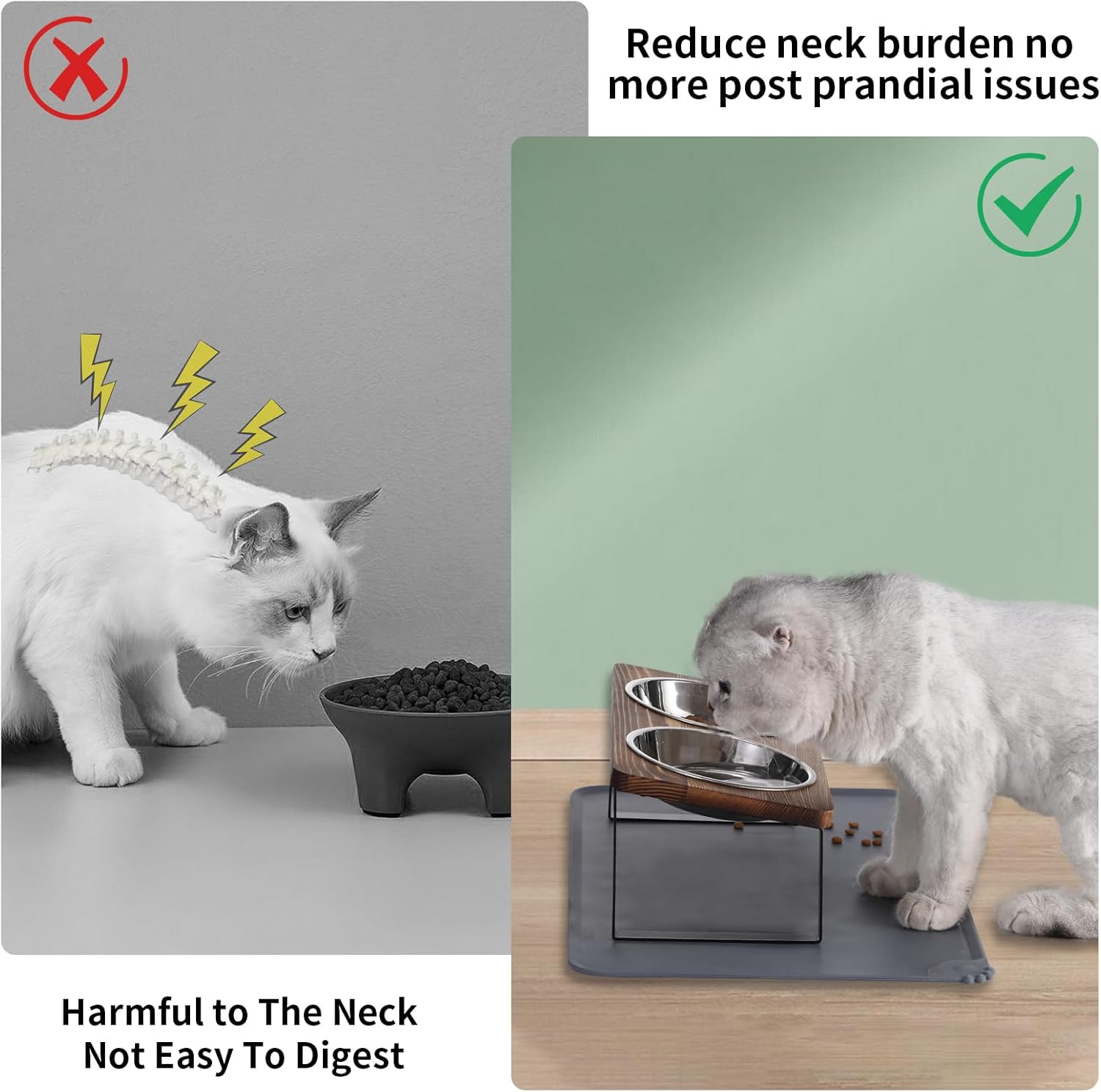 • 【Pet Safe Material】The cat food and water bowl set are made of premium food-grade stainless steel bowls which are rust-resistant and removable. Dishwashers safe and easy to clean. Natural and odor-free wood is waterproof and durable.