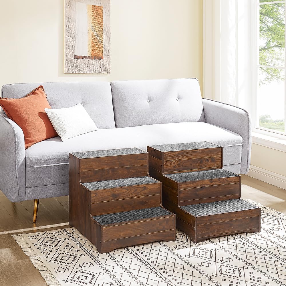 beeNbkks Dog Stairs Furniture, Extra Wide Wooden Pet Steps for Medium Large Dogs and Cats, Non-Slip Pet Ladder for Elderly Injured Pets Short Legged Puppy to Reach Couch Sofa High Bed Windowsill