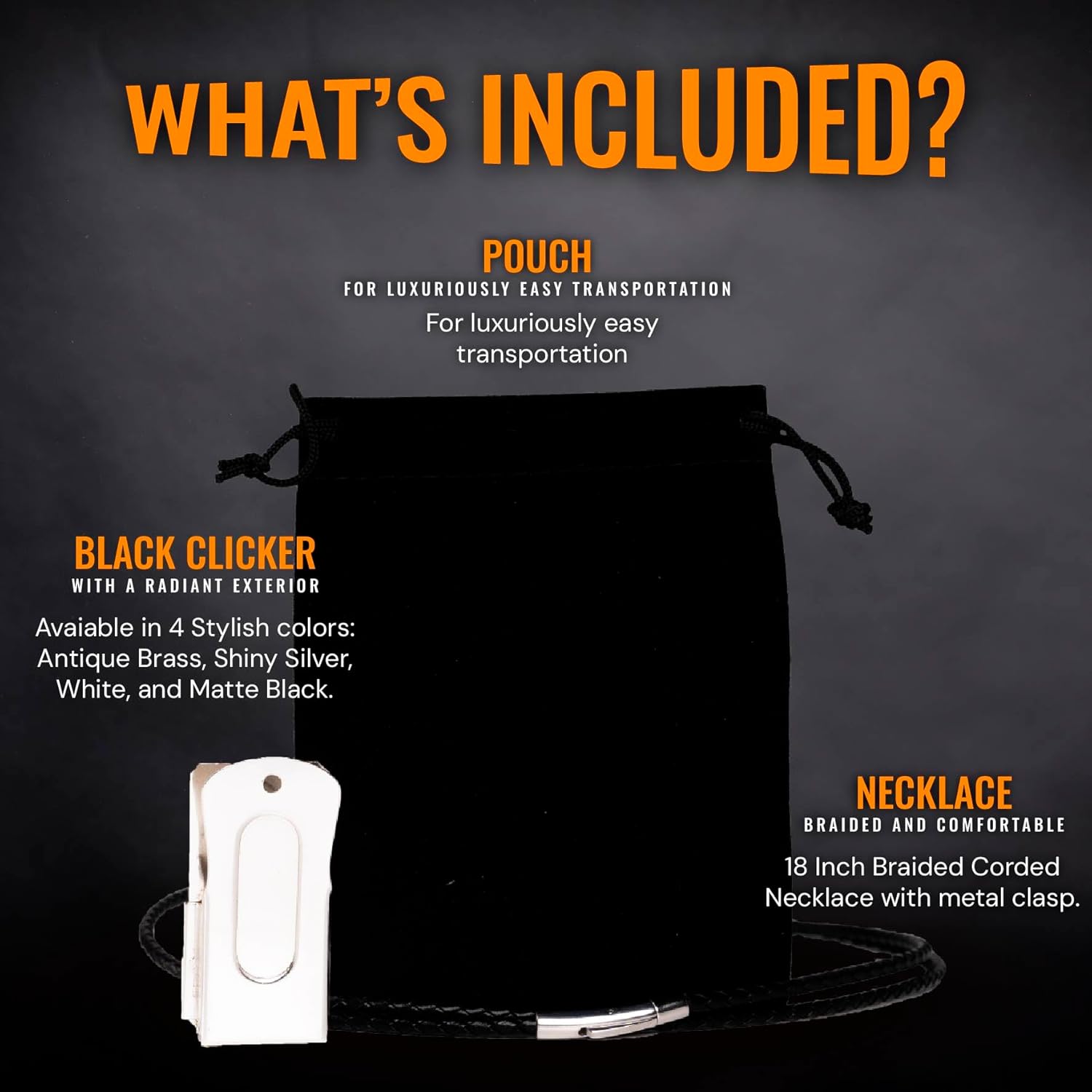 • Stand Out with Class: In a sea of ordinary clickers, our elegant White Puppy Training Clicker sets you apart. Embrace sophistication and style while improving your dog agility. Our dog accessories clicker product has a black exterior and also features a braided leather necklace with a magnetic metal clasp that matches your style perfectly