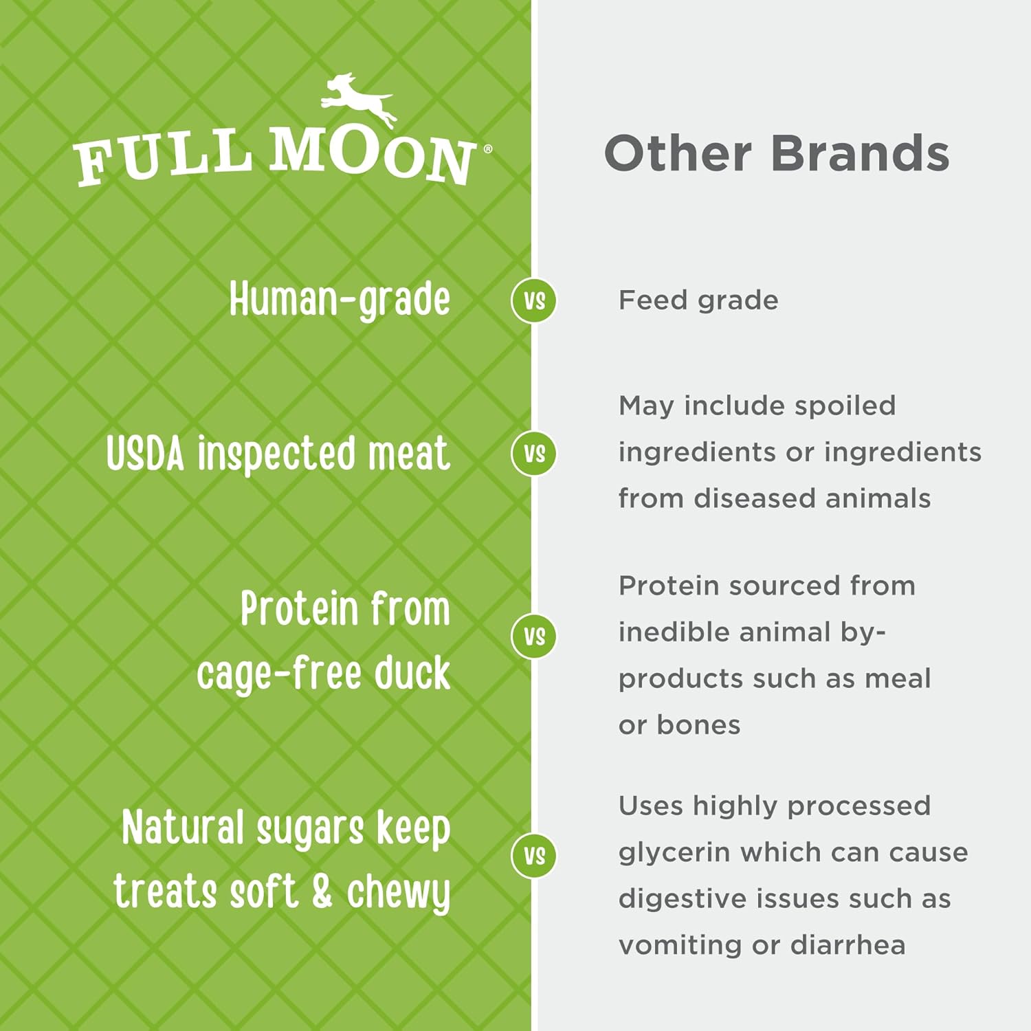 • U.S.-GROWN DUCK: Full Moon treats are proudly made in the United States using regionally sourced ingredients, including USDA approved, cage-free duck.