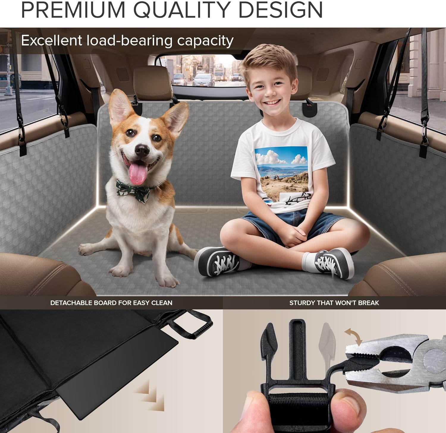 Back Seat Extender for Dogs, Heavy Duty Dog Car Seat Cover for Back Seat and Aggressive Chewer, Large Hard Bottom Car Seat Cover for Dogs, Dog Hammock for Car, Travel Pet Car Bed for Car, SUV, Truck