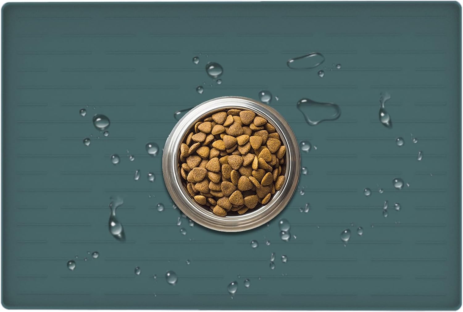 24" x 16" Dog Food Mat, Silicone Pet Mats for Food and Water, Nonslip Pet Feeding Mats for Floors, Dog Cat Bowl Mat with Raised Edges, Dark Green
