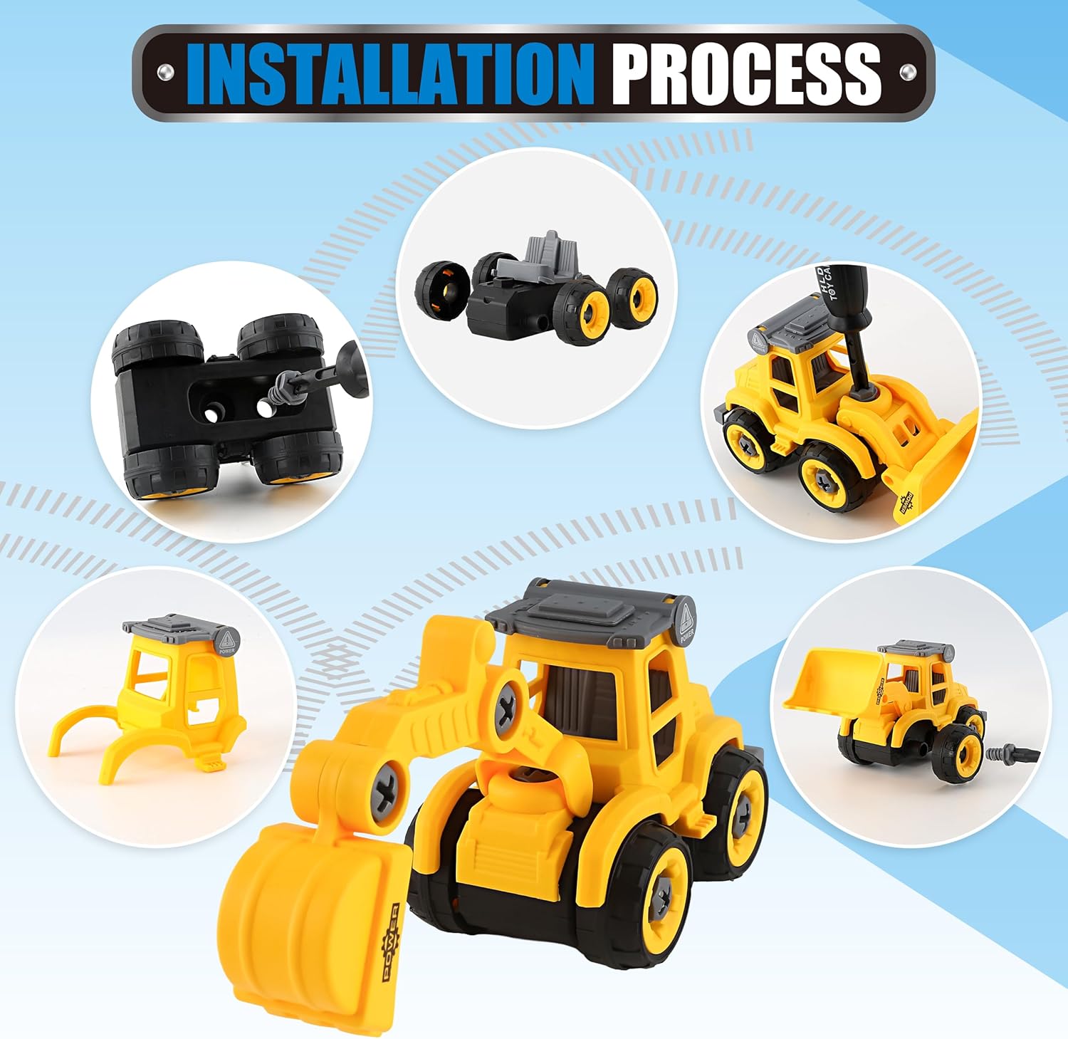 • Interactive Buildable Vehicle Fleet:Assemble 4 construction vehicles (excavator/dump truck/mixer/bulldozer) featuring movable parts and a conveyor belt. Develops logical sequencing and finger strength through hands-on mechanical play.