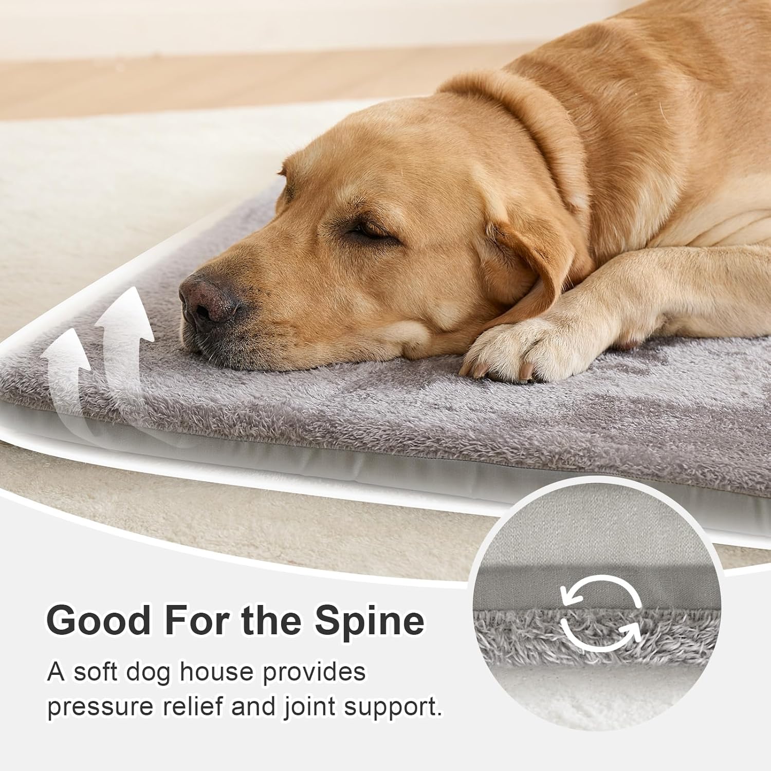• Material Design: The dog house indoor is made of special sponge, sturdy & durable. The outer surface is high density oxford cloth, which is easy-clean. The double-sided inner pillow, filled with PP cotton, is plump and suitable for four seasons