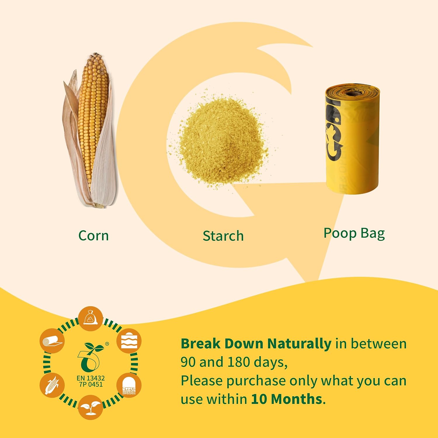 • 🌱 ECO-friendly materials: Codirom dog poop bags are made of corn, vegetable oil, and PBAT (a fully compostable polymer). Keep the bags away from heat sources and store in a cool, dry place. The available time of compostable bags is nearly 12 months, so purchase only that will be used within 10 months.