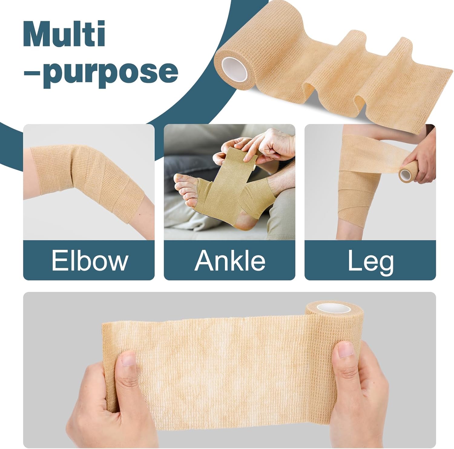 • Versatile Bandage: Elastic Cohesive Bandage help to secure bandage wraps, relieve swelling and promote healing, ideal for strains and sprains. Can be used as bandage wrap for wounds, vet wrap, sports wrap, athletic wrist tape, baseball wrist tape, ankle tape, tattoo wrap bandage, tattoo grip tape wrap