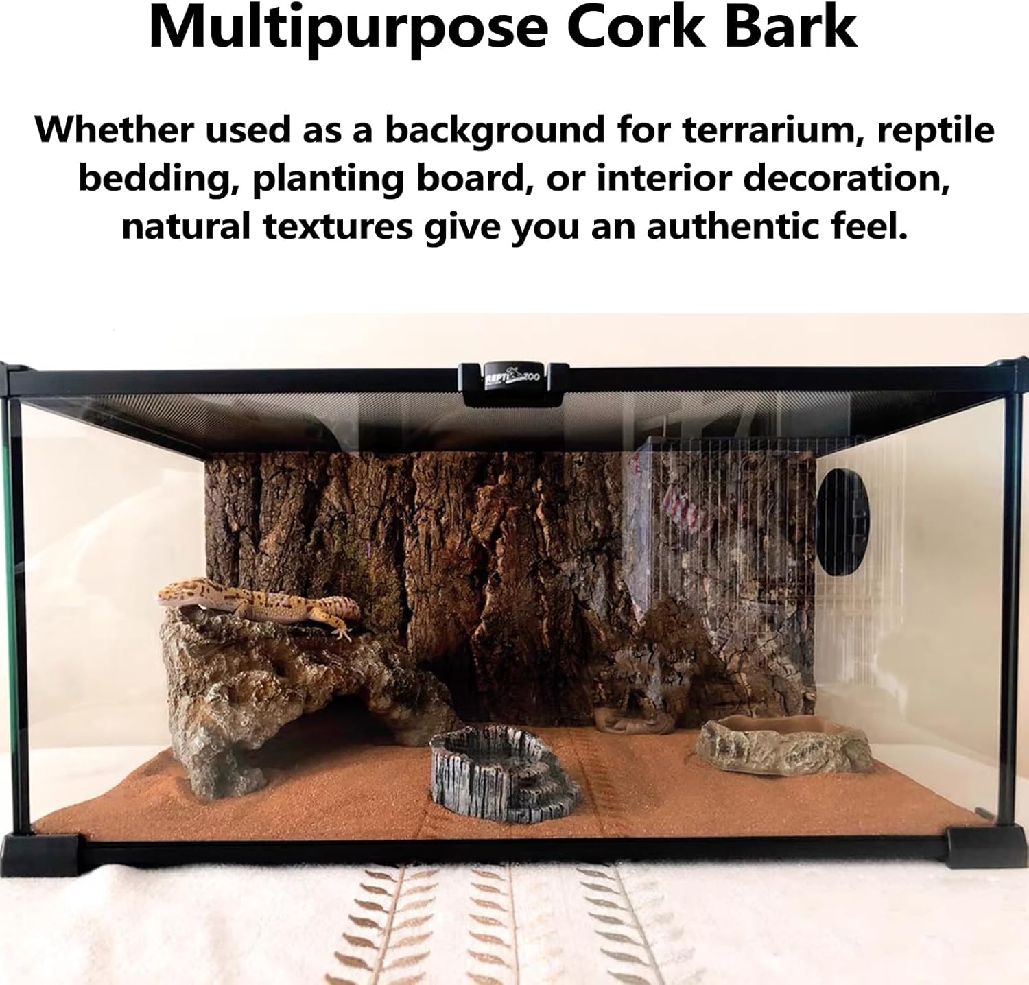 • Easy to Cut: Our reptile cork bark is safe and convenient to use. It can be easily cut into any desired size, allowing you to customize it according to your specific tank requirements. This flexibility ensures it fits perfectly in different terrariums, enhancing the overall aesthetic appeal of the glass container.