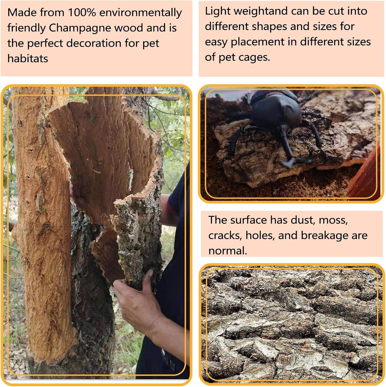 • Natural Material: Our reptile cork bark backgrounds are made from champagne wood, ensuring safety and durability for your reptilian friends. It creates a natural habitat mimicking the wild environment, allowing them to live and play freely.