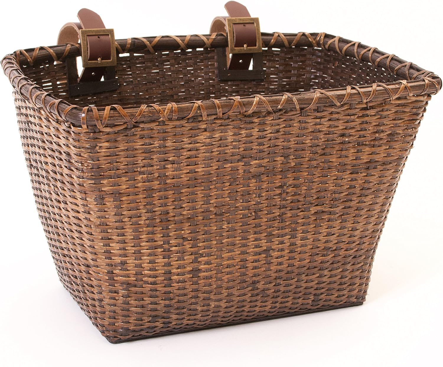 Retrospec Bicycles Cane Woven Rectangular Toto Basket with Authentic Leather Straps and Brass Buckles