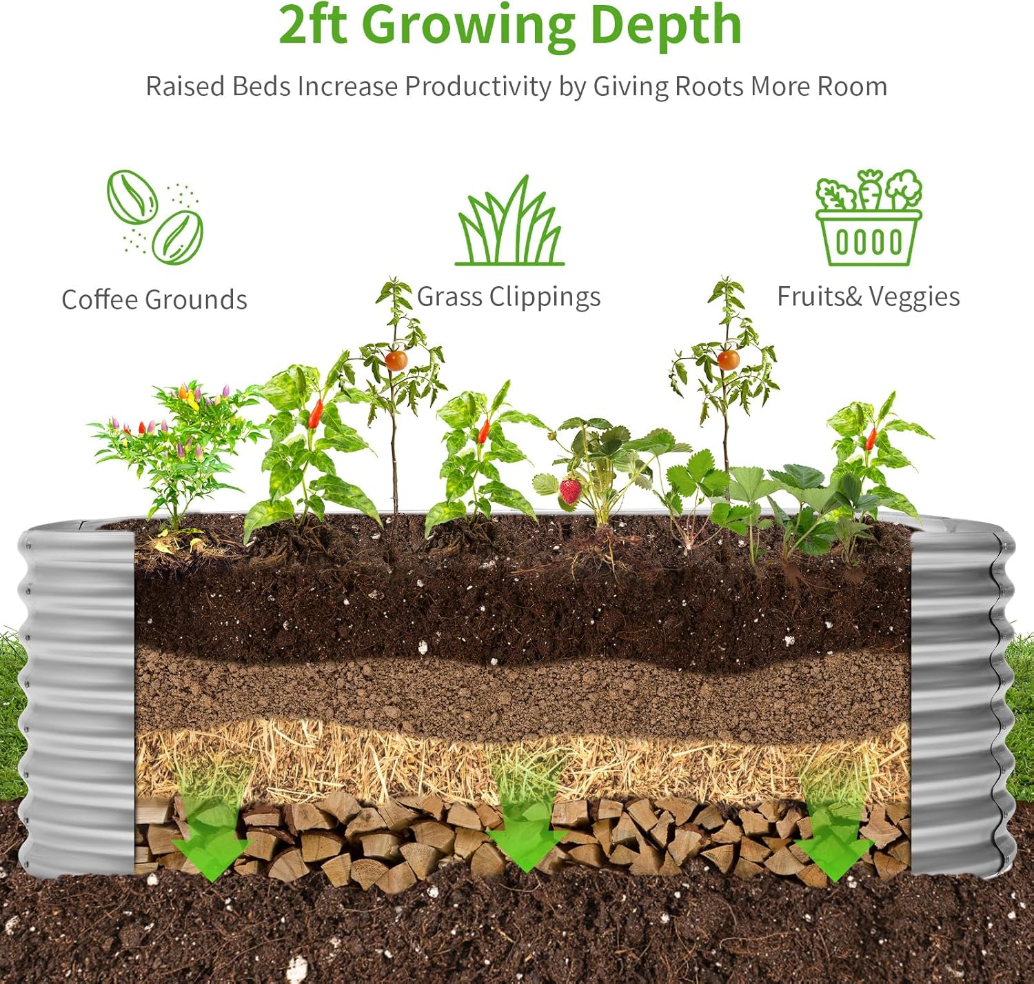 • Large space: 96'(L) x 48 "(W) x 24" (H) metal raised garden bed will provide enough space to grow various vegetables, fruits, flowers.
