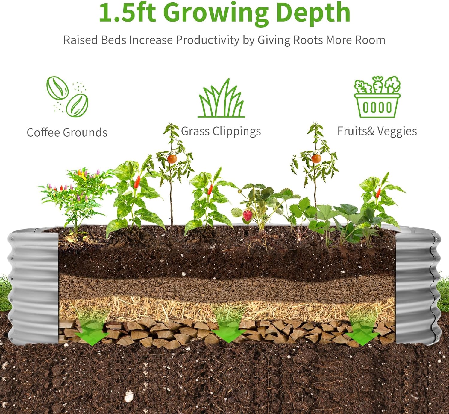 • Deepened Height: This metal planters for outdoors measures 72 "L x 36 "W x 18 "H, which provides more than ample room for plants to grow, as well as some deeper rooted vegetables or fruits, compared to the 12 "H garden bed.