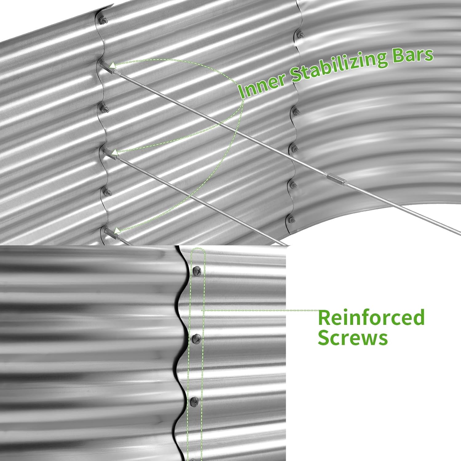 Land Guard Galvanized Metal Raised Garden Bed Kit, 8x4x1.5ft Large Planter Boxes Outdoor, Oval Gardening Box, Patio Garden Planter Box for Vegetables (Silver)