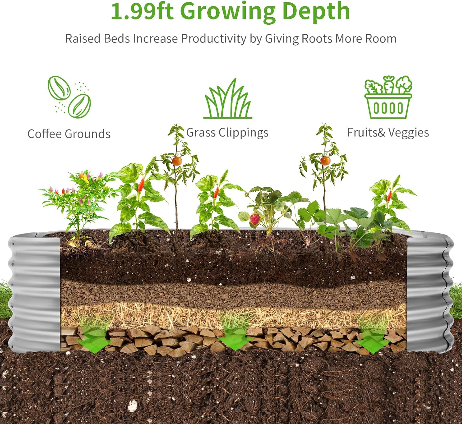 • Professional metal raised garden bed size: 6×3×1.99ft, you can grow vegetables, fruits, flowers, herbs and other plants in courtyards, yards, gardens and greenhouses.