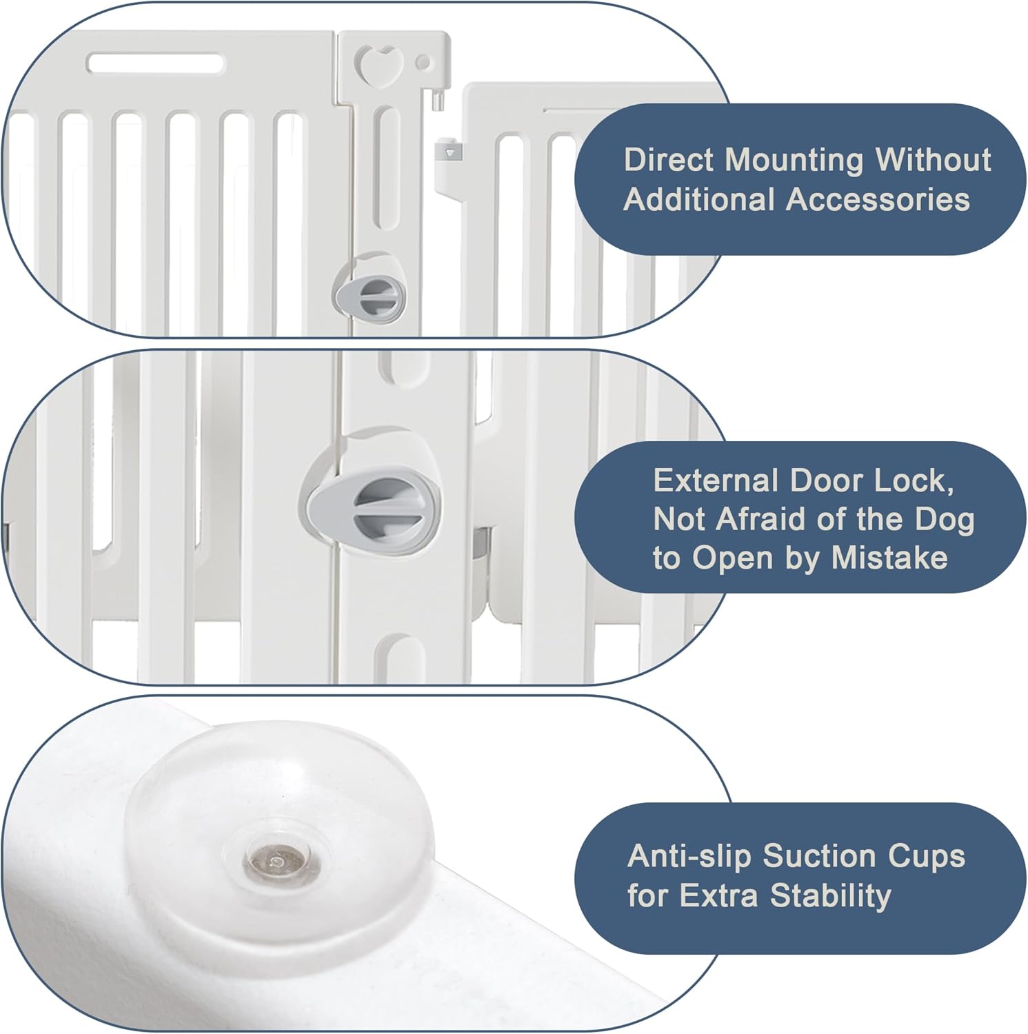 • PET-SAFE DESIGN: Our dog playpen features a secure external door lock to prevent accidental opening, making it safe for when you're out and about or when you have guests in the house. Your pet's safety is our priority!