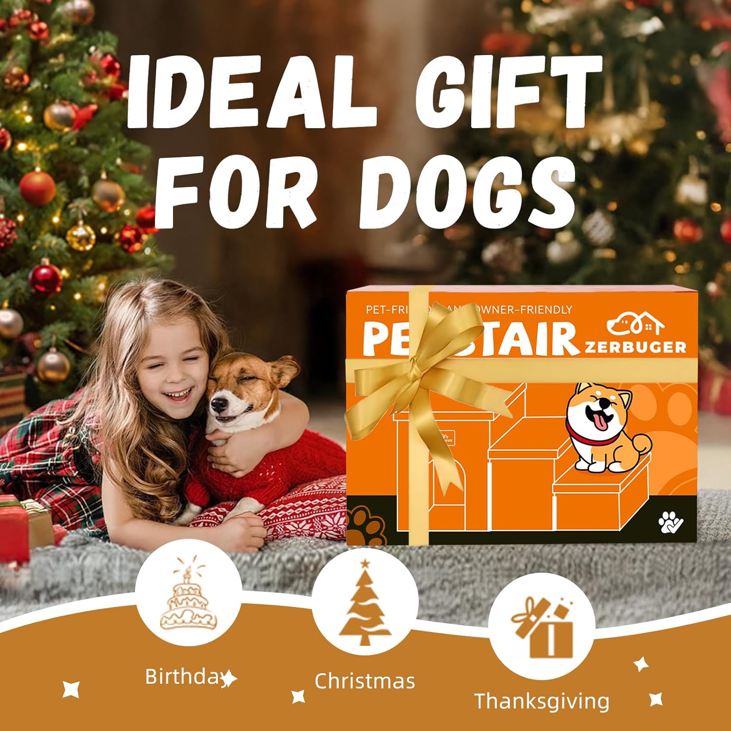• A TOUCH OF LOVE FOR YOUR HOME: Zerbuger stairs are designed for pets and kids 3+. For your pets, our sturdy dog stairs provide a stable, secure way for dogs up to 200 LBS to climb onto furniture or beds. For your little ones, our stairs provide a safe and easy way to climb onto the bed. No more struggling or asking for help. It's a great way to encourage their independence while ensuring their safety. Our stairs add a touch of warmth and functionality to your home, creating a cozy and happy environment for the whole family.