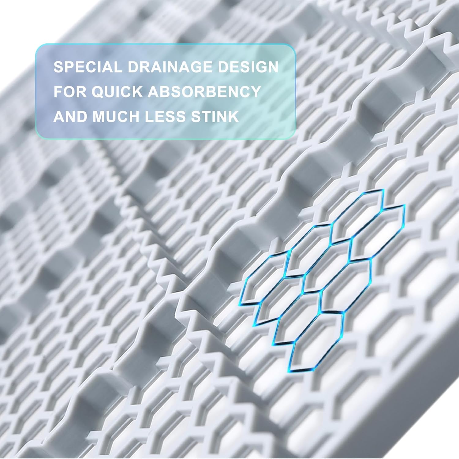 • Sturdy Grate : The plastic grate layer keeps the dog turf separated from the pee pad. The holes are well spaced so the pee goes straight through to the pee pad. The grate is a sturdy, heavy duty plastic.