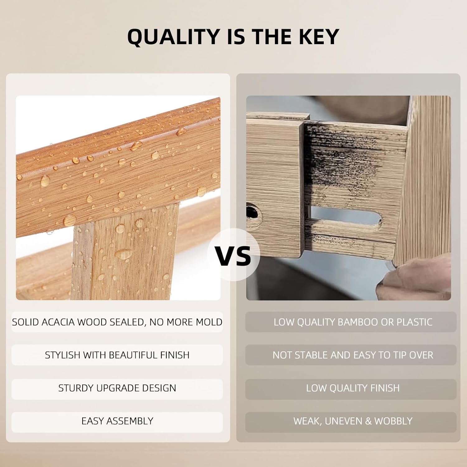 • Premium Material – Handcrafted with acacia hardwood. This elevated dog bowl stand has a premium wood finishing look and water resistant.