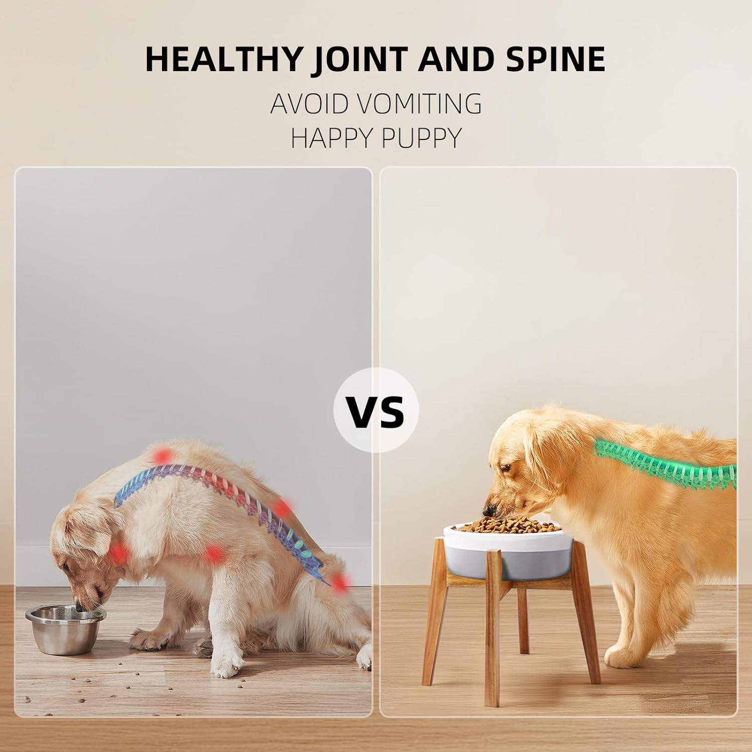 • Improved sturdy structure, this stand is constructed with solid acacia wood with an enhanced shape that keeps the bowl elevated without tripping over. It will hold the dog bowl, feeding station, slow feeder dog bowl stably.