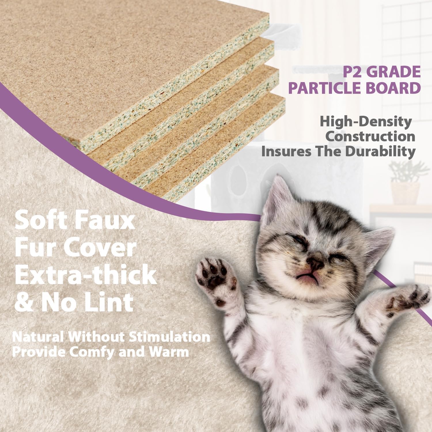 • Sturdy & Durable:The Indoor Cat Climbing Shelf is made of high quality natural particle board, reinforced base, skin-friendly plush cover and natural sisal scratching post, designed to provide your cat with a sturdy, stable home entertainment center. With each platform and litter covered in soft plush fabric, your furry family member will love the soft touch of Big Cat Tree's plush and the sensation of exploring and sniffing around their new home.