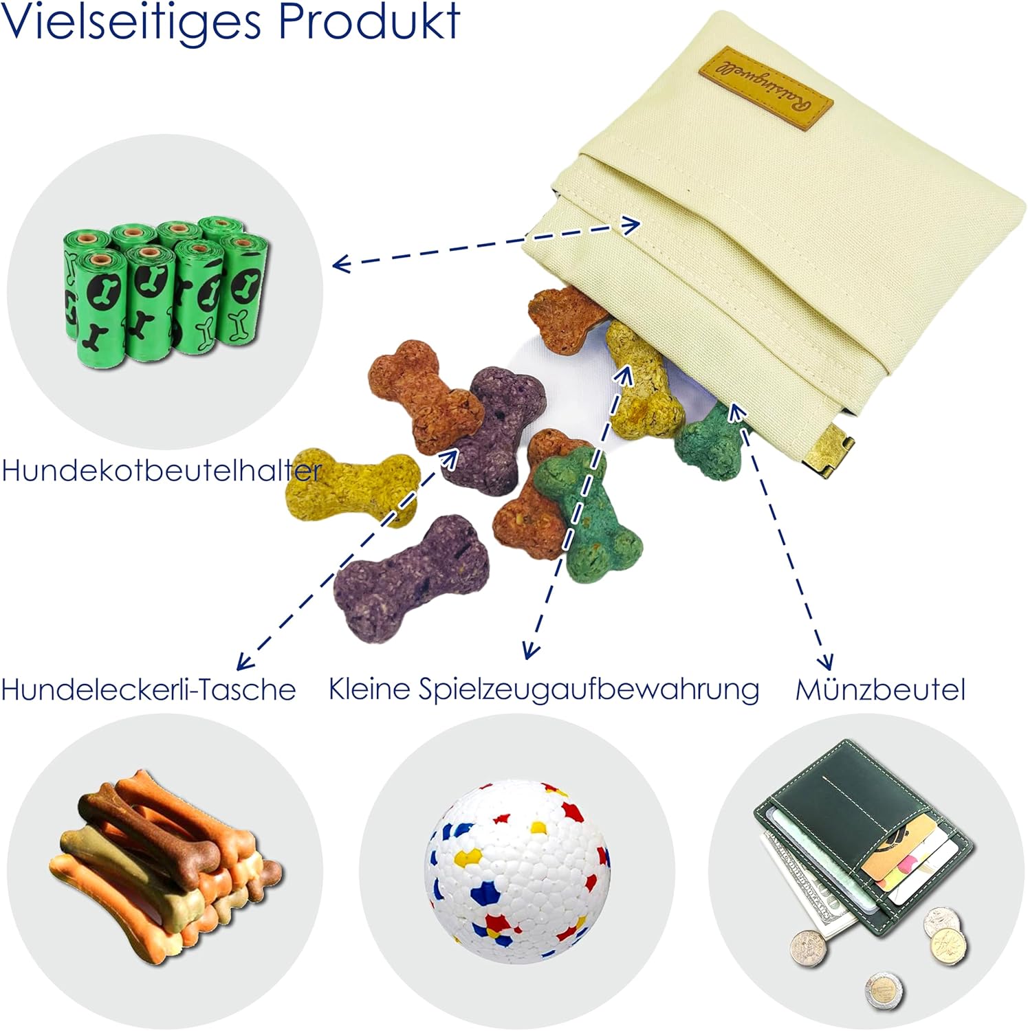 Dog Treat Pouch, Lvory Pocket Sized Pet Training Pouch, Cotton Fabric, Hand Free Dog Walking Bag with Carabiner, Self-Closing Pet Feed Snack Reward, for Puppy Travel or Outdoor Use