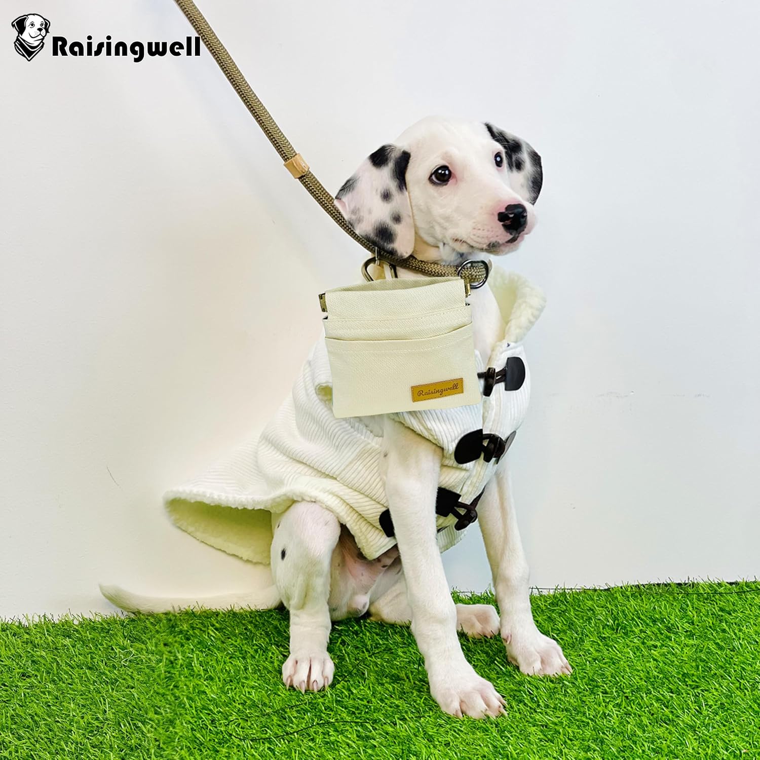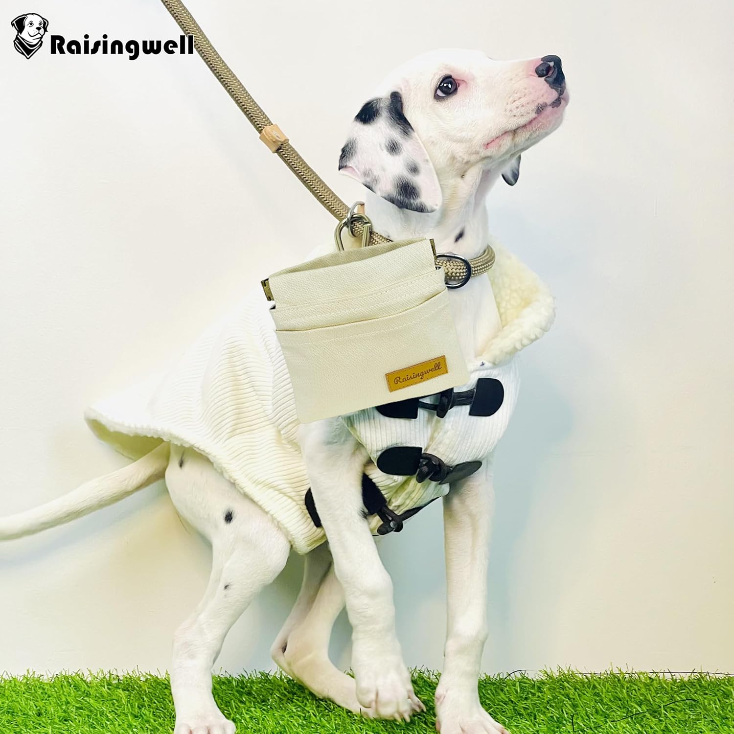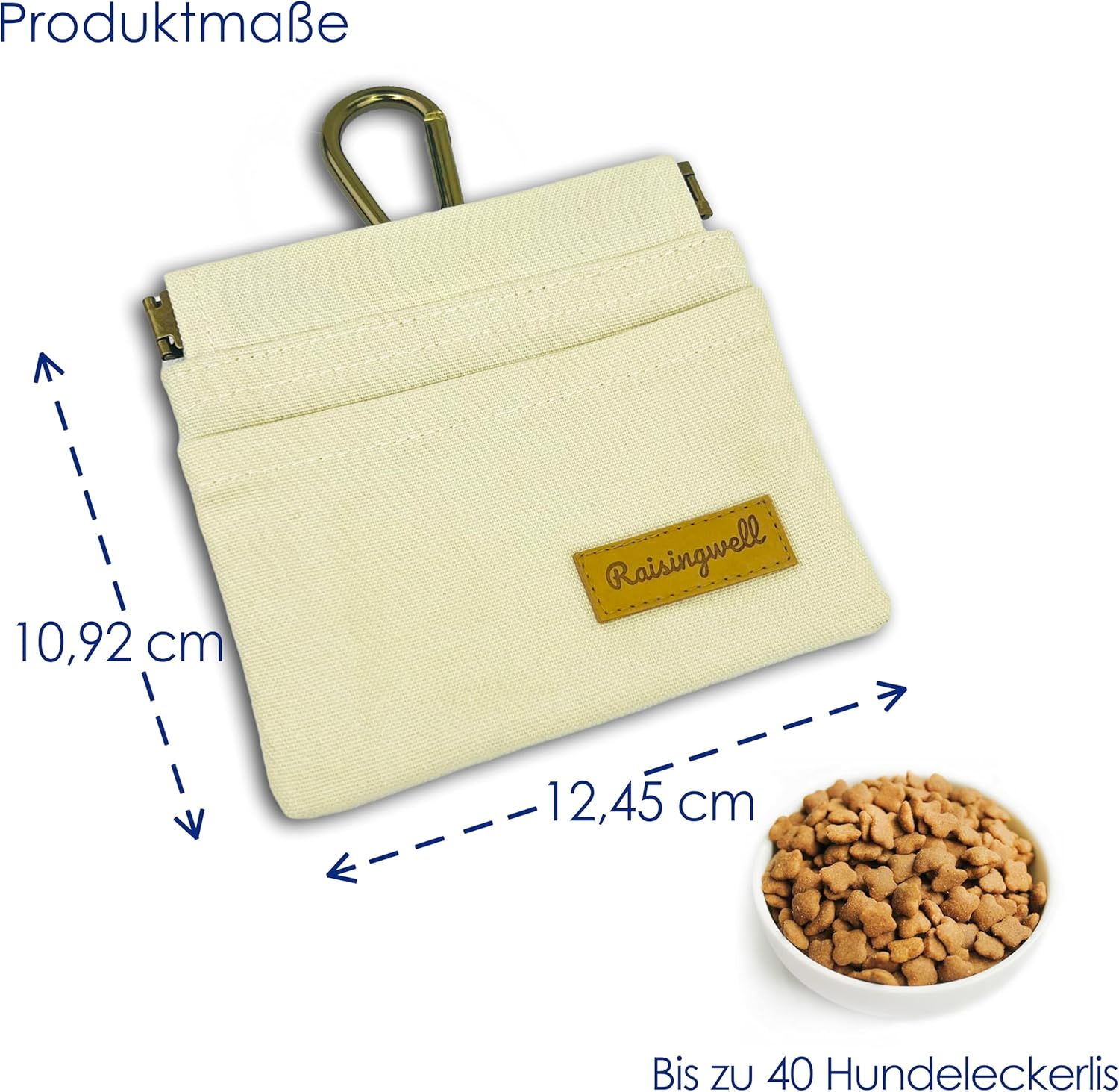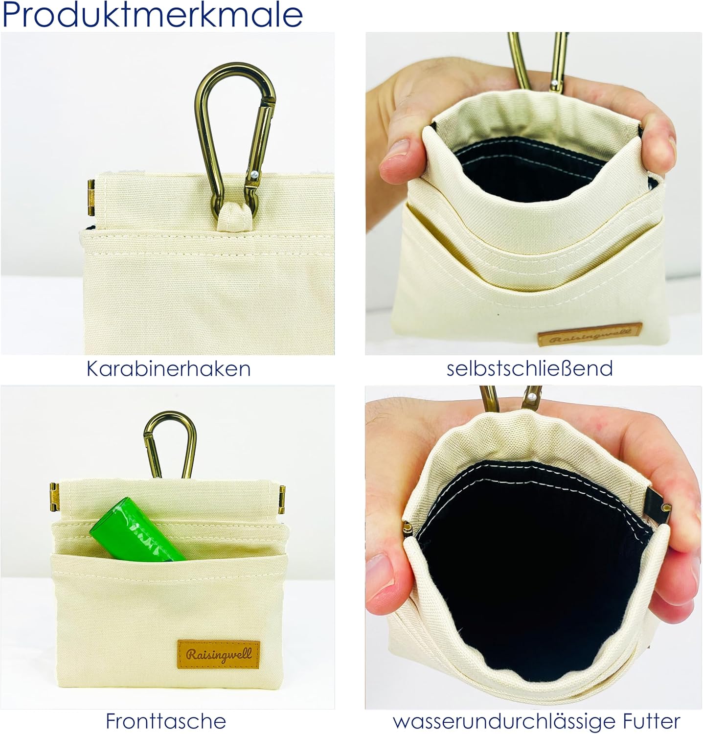 • Durable Material: Raisingwell's dog treat training pouch is crafted from durable, washable, non-toxic vegan fabric, made of pure cotton. In particular, the waterproof lining addresses the issue of difficult cleaning inside the training pouch.