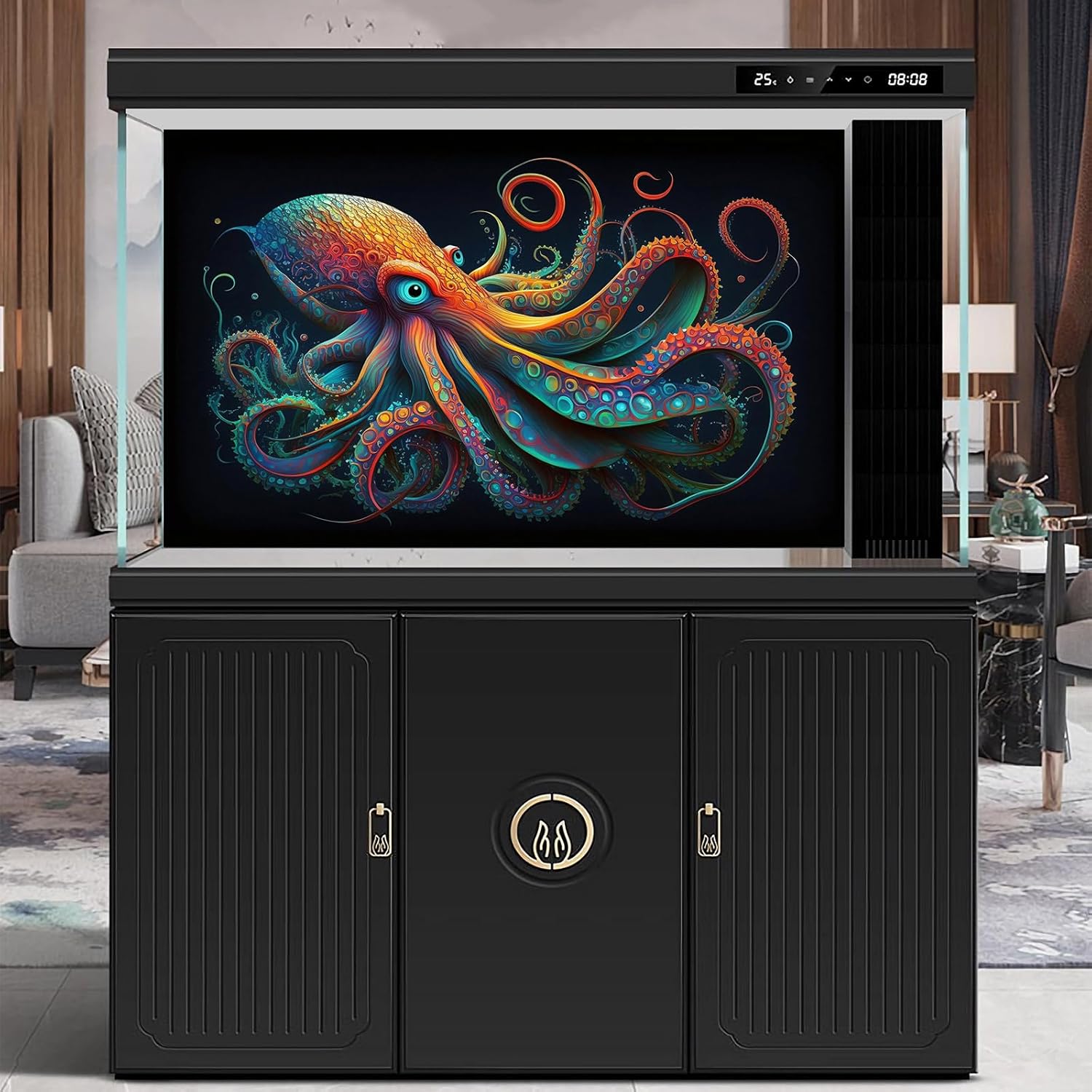 Octopus Aquarium Background Abstract Colorful Octopus Terrarium Background Glowing Octopus on Black Background Fish Tank Backdrop Poster Wallpaper Decorations Vinyl 36x18in